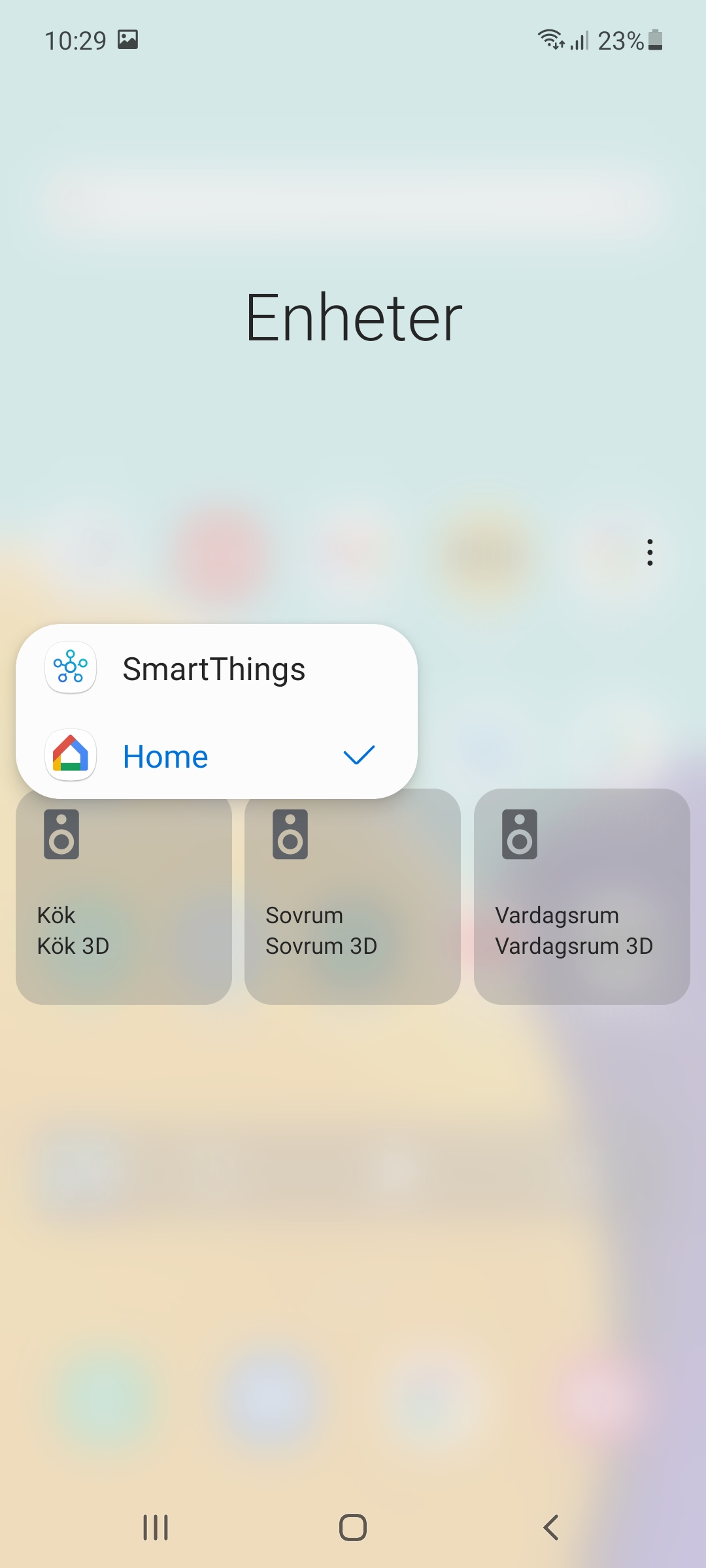 För Android 11 har Samsung gjort ett flertal anpassningar av operativsystemet. En stor nyhet i systemet är ett nytt sätt att få snabb åtkomst till smarta och uppkopplade enheter. I Android ligger denna vy bakom ett långtryck på på/av-knappen. I OneUI ligger den istället bakom en knapp som kallas Enheter, som visas när vi drar ner från toppen av skärmen. Knappen är placerad långt upp på skärmen och är därför lite svår att nå. Vi föredrar därför designen av Androids system men kan uppskatta Samsungs integrering av SmartThings i menyn.