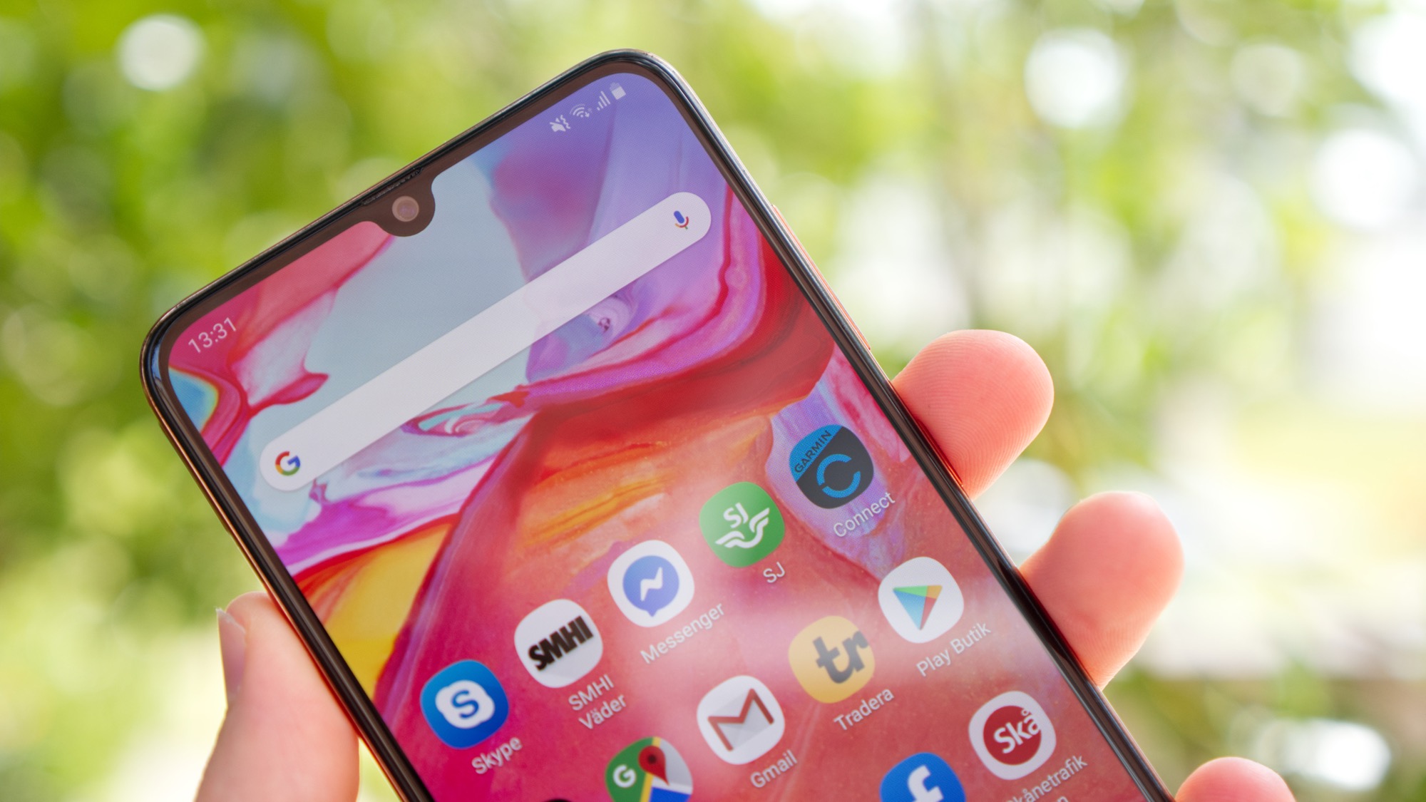 Samsung Galaxy A70 är en bjässe från utsidan till insidan. På utsidan finns en modern men klumpigt stor design som fuskar lite med en glas-liknande plast på baksidan. På insidan finns ett gigantiskt batteri som erbjuder en batteritid på två dagar för många användare. Här finns också gott om lagring och gott om RAM som gör Galaxy A70 till en av få billigare mobiler från Samsung som inte dras med prestandaproblem. Fingeravtrycksläsaren drar samtidigt ner prestandaintrycket med långa lästider och medioker pålitlighet. Det gör Galaxy A70 till en kompetent mellanklassmobil som inte kan slå alla på allt men som i alla fall kan skryta med en imponerande batteritid.