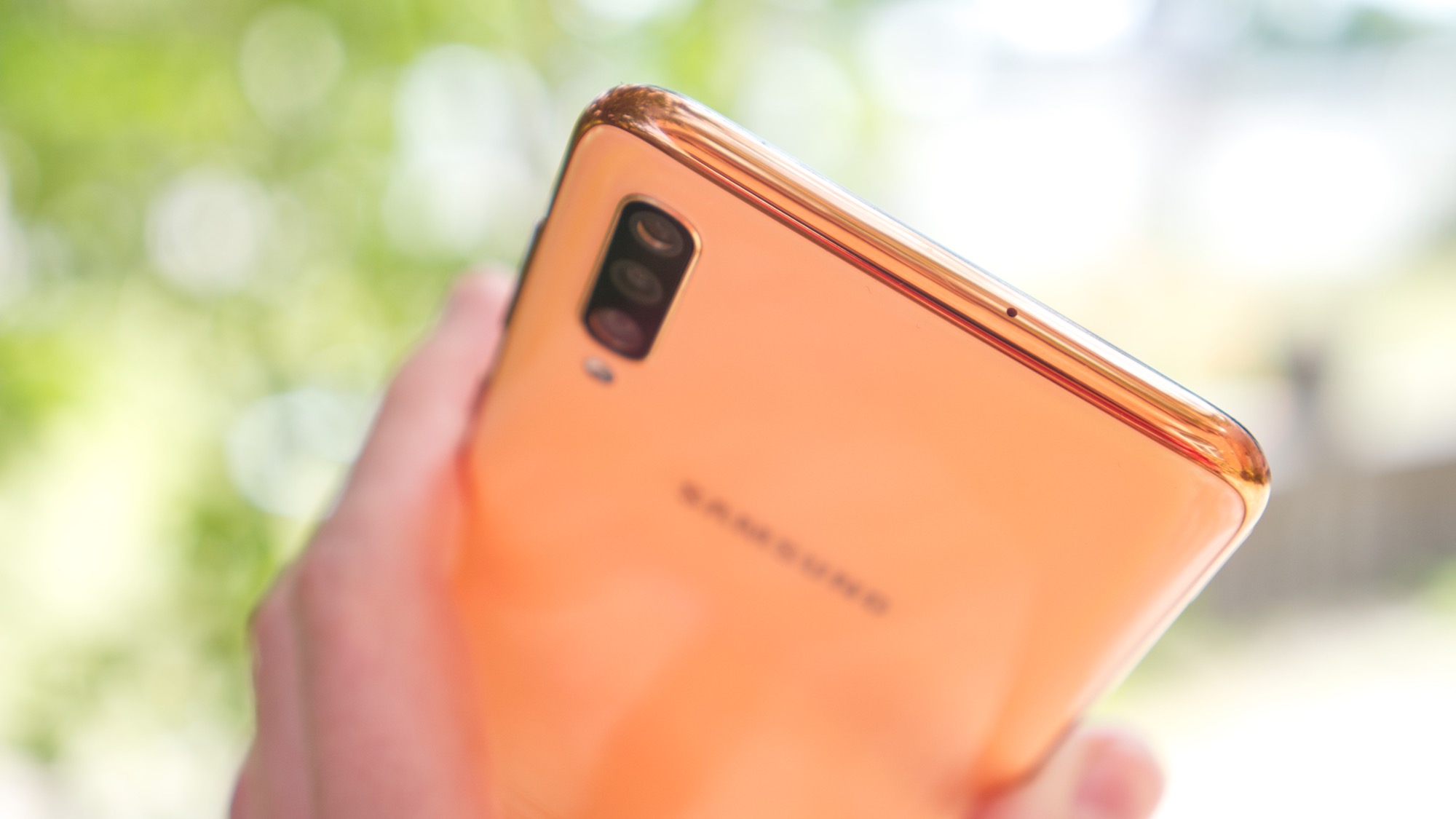 Baksidan av Galaxy A70 täcks av plast, på samma sätt som Galaxy A50. Den glasliknande baksidan har därmed inte samma risk att spricka som glas men har inte heller samma reptålighet. Plast kan lätt repas av till exempel metall medan glas i princip bara repas av hårda mineraler. På en telefon i A70:s prisklass känns det definitivt lite tråkigt. Särskilt när konkurrenter så som Nokia 8.1 har ett glasbakstycke som dessutom erbjuder en betydligt bättre kvalitetskänsla.
