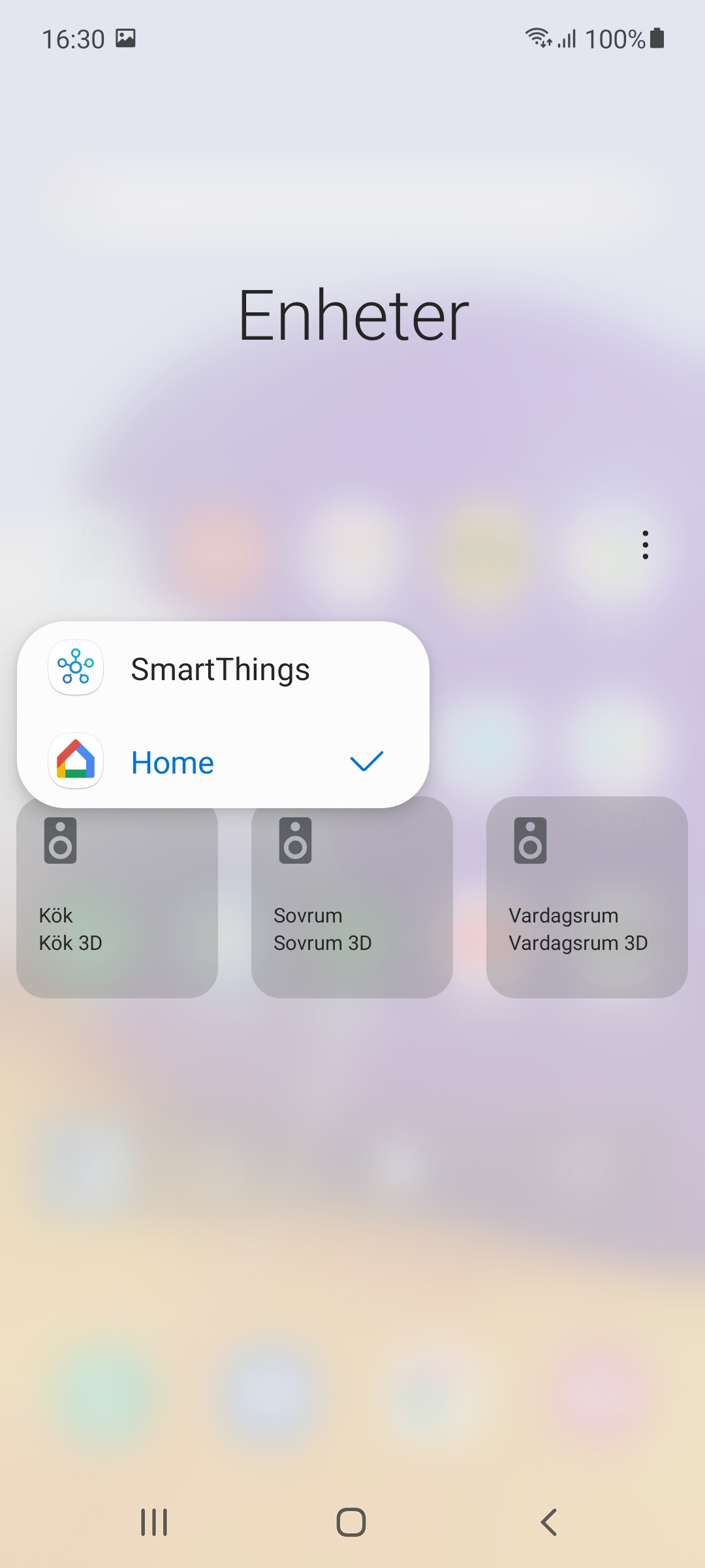För Android 11 har Samsung gjort ett flertal anpassningar av operativsystemet. En stor nyhet i systemet är ett nytt sätt att få snabb åtkomst till smarta och uppkopplade enheter. I Android ligger denna vy bakom ett långtryck på på/av-knappen. I OneUI ligger den istället bakom en knapp som kallas Enheter, som visas när vi drar ner från toppen av skärmen. Knappen är placerad långt upp på skärmen och är därför lite svår att nå. Vi föredrar därför designen av Androids system men kan uppskatta Samsungs integrering av SmartThings i menyn.