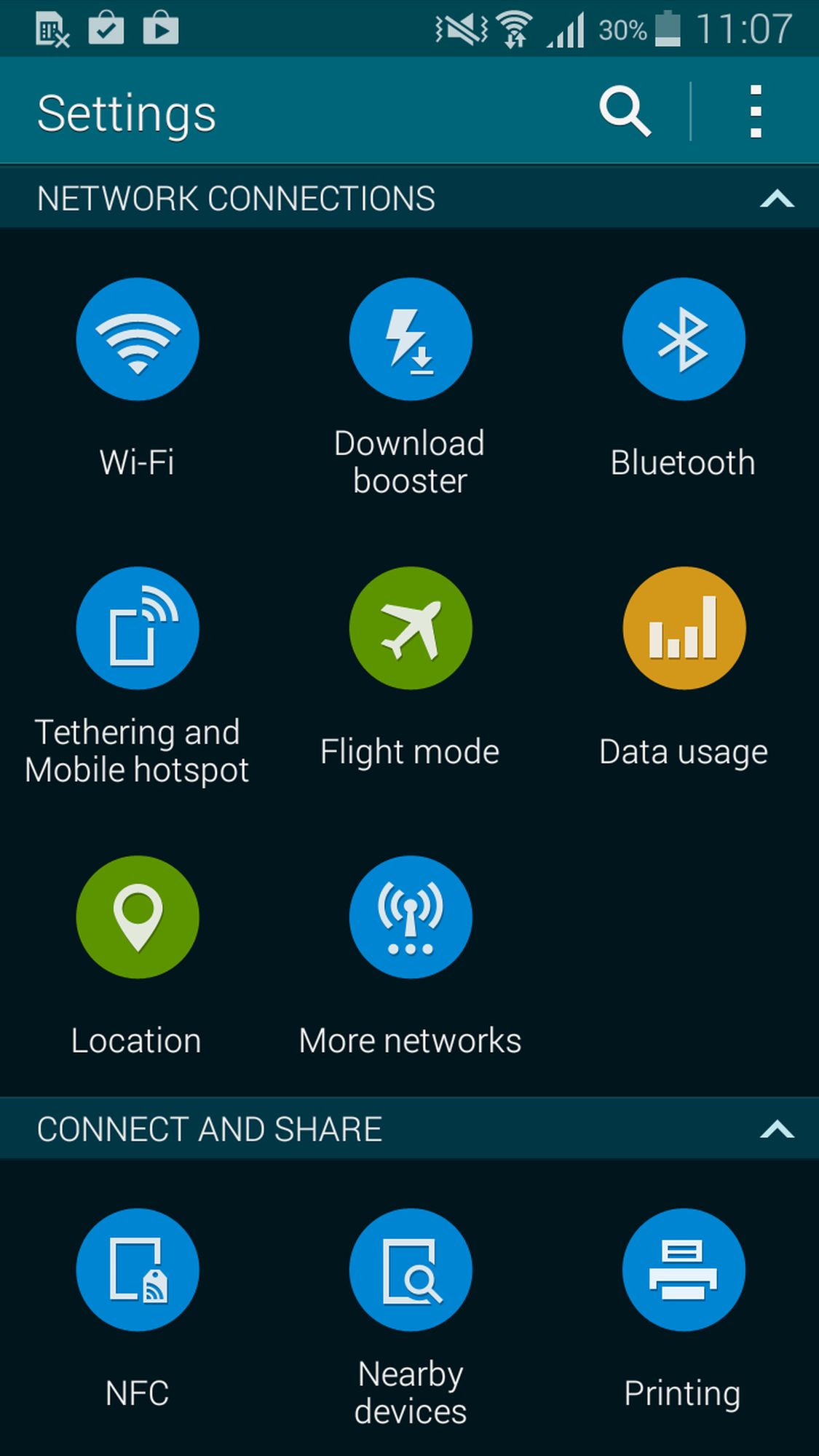Ser vi till inställningsapplikationen hittar vi mer eller mindre exakt samma inställningsmöjligheter som hos alla andra Kitkat-baserade telefoner på marknaden, men med Samsungs eget designstuk i menyerna. Här kan du även konfigurera den inbyggda fingeravtrycksläsaren.