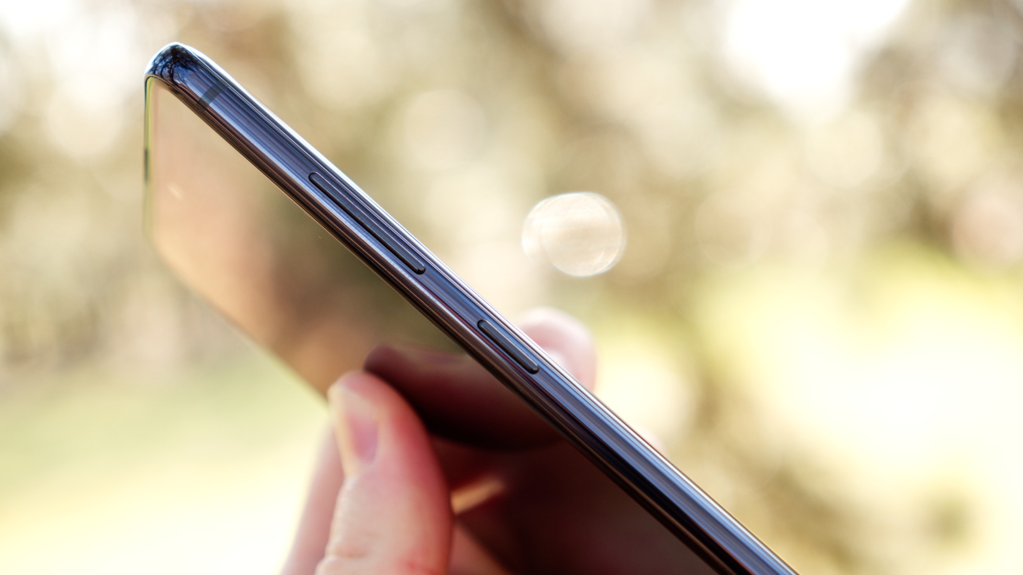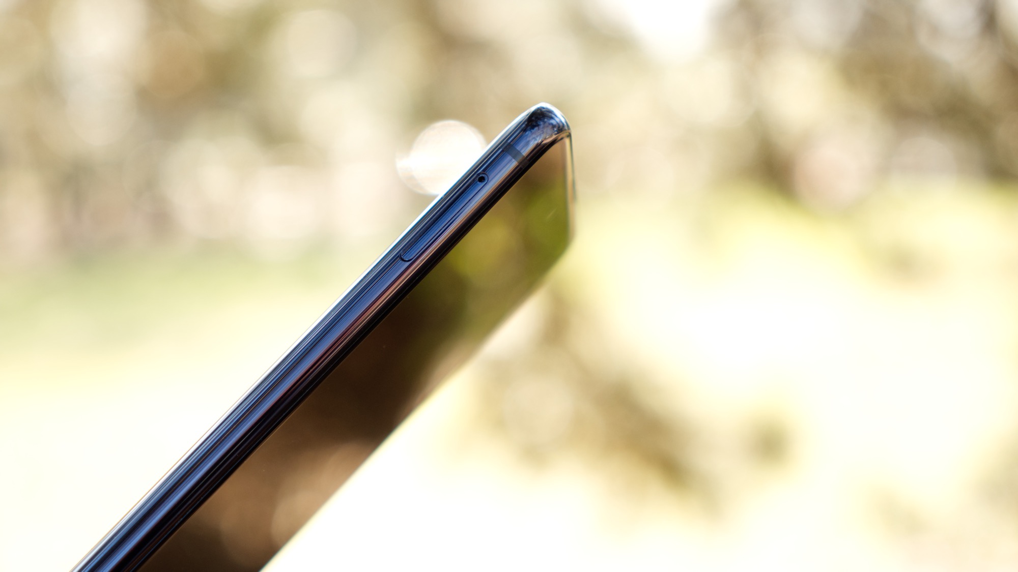 Längs telefonens högra sida finns en på/av-knapp och två volymknappar. Längs ovansidan finns en sekundär mikrofon och längs vänster sida finns en korthållare med plats för dubbla nanoSIM-kort eller ett nanoSIM- och ett microSD-kort.