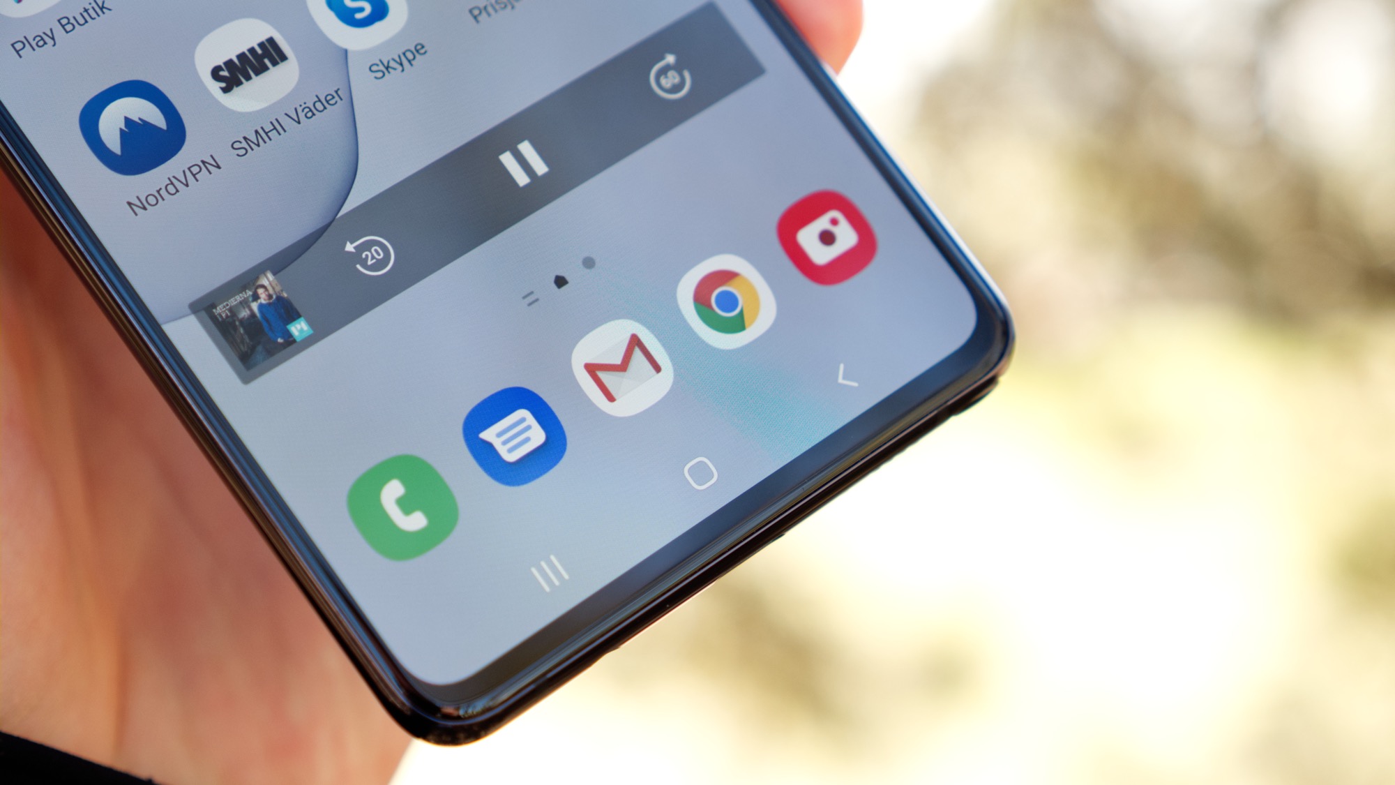 Läs mer om mjukvaranDet största problemet och den största fördelen med Samsungs mjukvara är nära identisk. Samsung lägger nämligen stor vikt vid funktionalitet. Det ger tillgång till bra funktioner som saknas i Android. Det kan samtidigt göra användarupplevelsen lite förvirrande och frustrerande. För Android-användare kan Samsungs mjukvara ironiskt nog erbjuda en mer klassisk Android-upplevelse än vad Android One kan göra. Samsung har till exempel valt att behålla möjligheten att byta Wi-Fi-nätverk och anslutna Bluetooth-enheter med snabbgenvägarna, utan att byta app. Ljudsystemet är dessutom så gott som oförändrat med volymknappar som styr ringvolym, inte bara mediavolym. Som standard kommer Samsungs mobiler dessutom med de tre klassiska navigeringsknapparna, även om Android 10s gestsystem också finns tillgängligt.