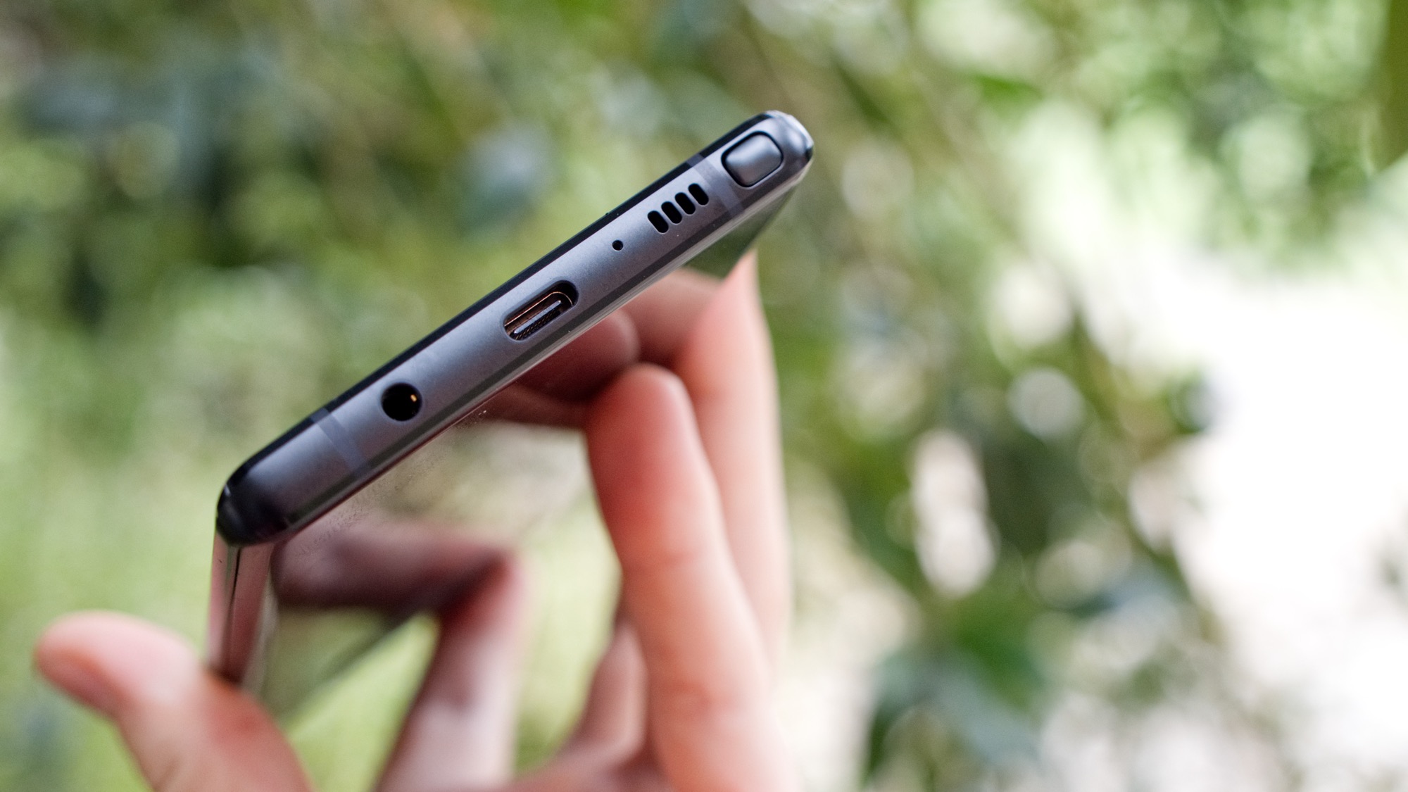 På undersidan av Note 9 finns en 3,5 mm hörlursport, USB Typ-C-port, högtalare, mikrofon och penna. Pennan kan tryckas ut med ett tryck och kan sedan dras ut ur sin plats i telefonen. Vi kommer att återkomma till pennans funktioner och prestanda senare i detta testet.