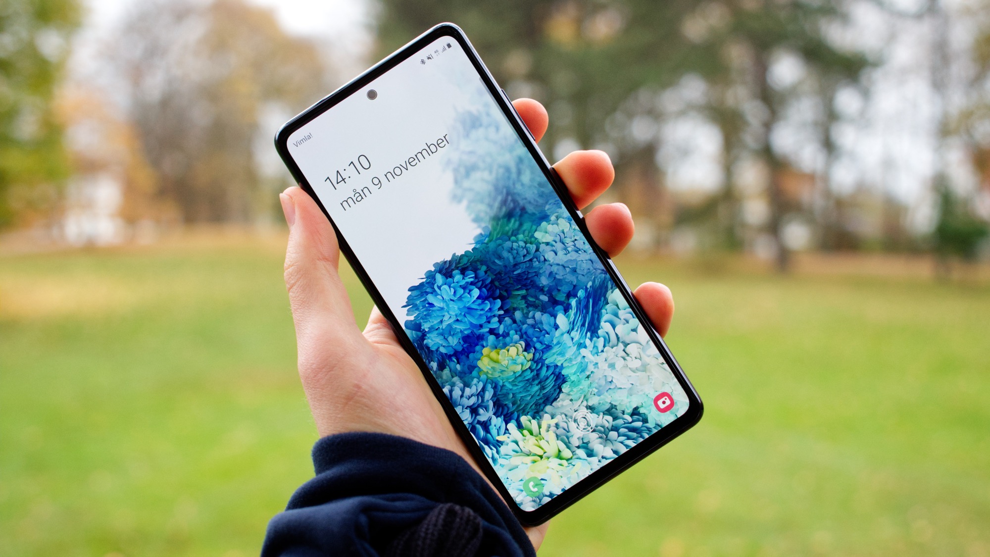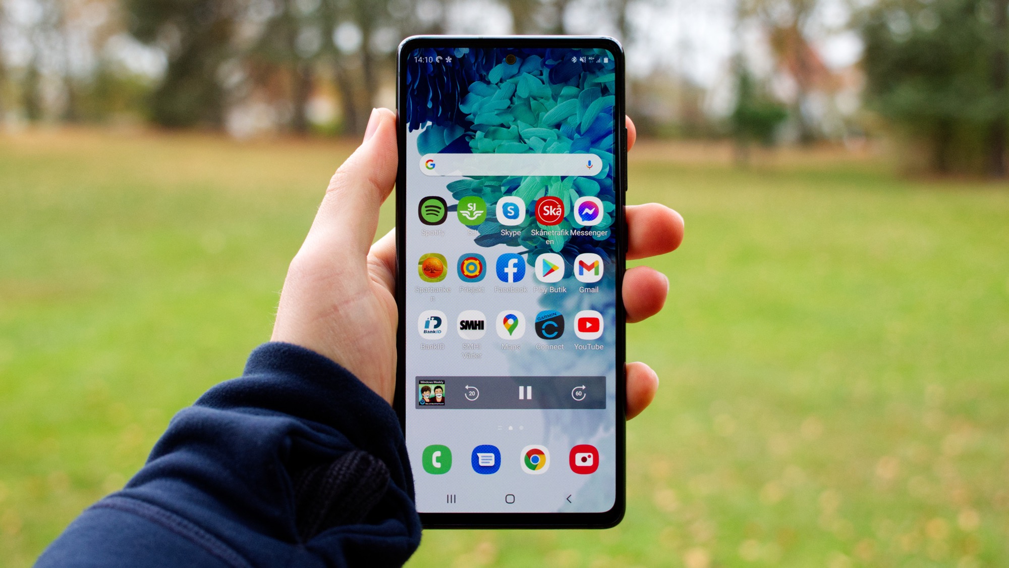 Samsung Galaxy S20 FE har en 6,5 tum AMOLED-skärm med en upplösning på 1 080 x 2 400. Det är alltså högupplöst men märkbart mindre än sina dyrare syskon. Skärmen är inte heller riktigt lika ljusstark som Galaxy S20+. Samsungs flaggskeppsmobiler har samtidigt världens bästa bildskärmar – jämförelsen är möjligtvis lite orättvis. I jämförelse med de allra flesta konkurrenter i klassen har Galaxy S20 FE en utmärkt bildskärm. En maximal ljusstyrka på knappt 900 nits är riktigt imponerande och vi är likvärdigt imponerade av skärmens färgexakthet, som bara har en gnutta blå ton. Med 120 Hz uppdateringsfrekvens är skärmen dessutom oerhört rapp. Mjukvaran flyger under fingrarna. Även om Galaxy S20 FE inte har Samsungs bästa skärm, är den helt enkelt ändå väldigt bra.
