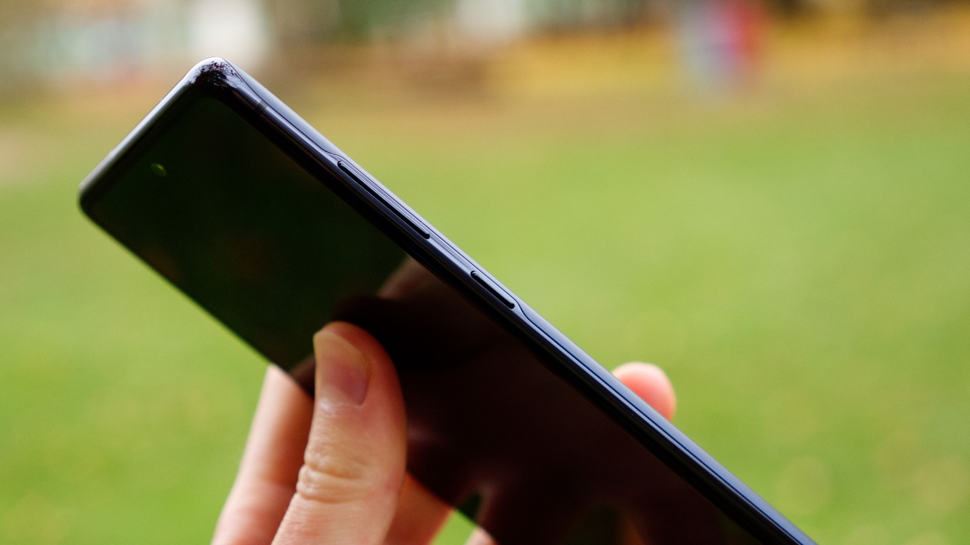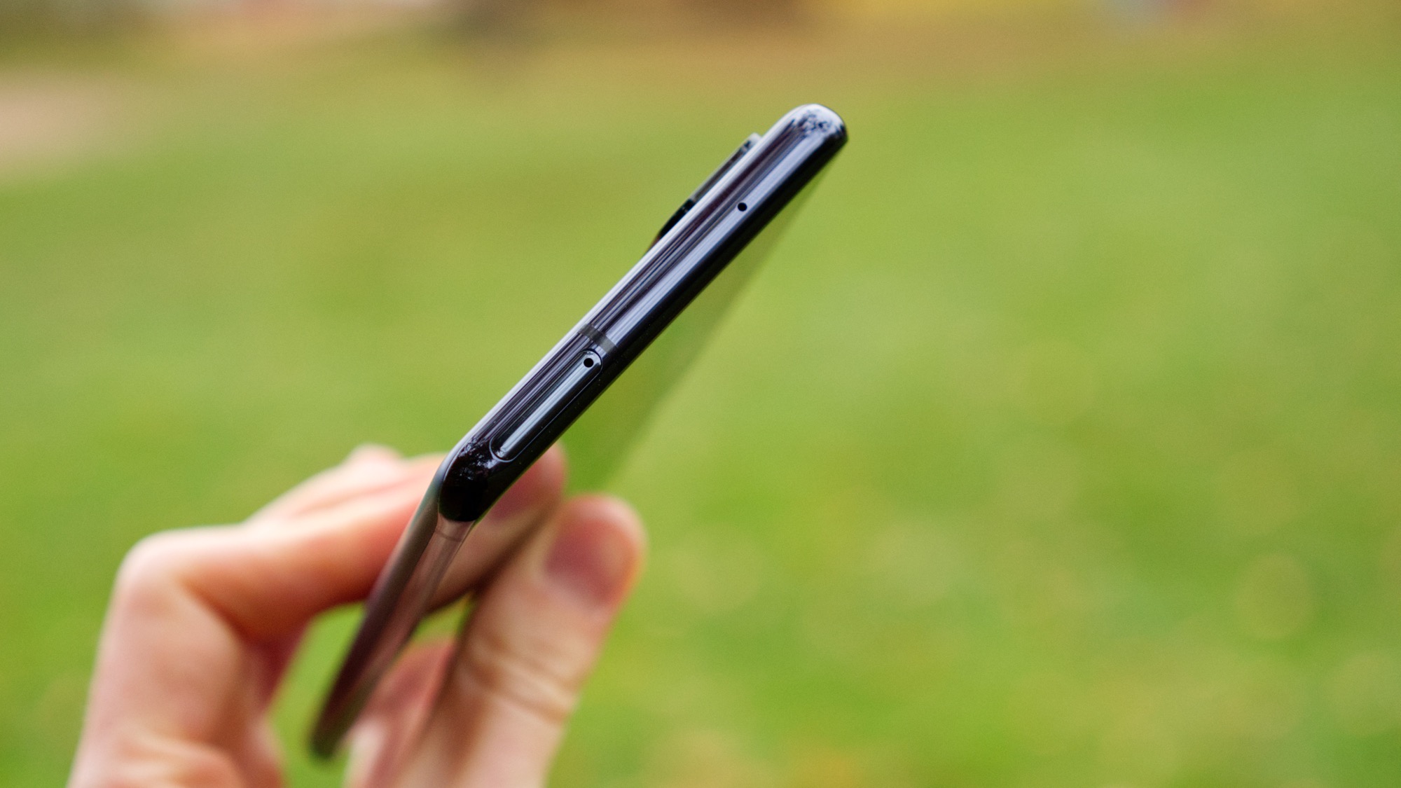 Det är främst sidorna av Galaxy S20 FE som gör att telefonen känns stadig, trots sin plastbaksida. Sidorna är gjorda av metall och har en blank finish. Längas höger sida finns en på/av-knapp och två volymknappar. De är lätta att nå och använda. Längs ovansidan finns en kortläsare med plats för dubbla nanoSIM eller ett nanoSIM- och ett microSD-kort. Galaxy S20 FE har för övrigt inget stöd för eSIM, vilket de dyrare Galaxy S20-modellerna har. Undersidan har en högtalare, mikrofon och USB Typ C-port. Galaxy S20 FE har alltså ingen hörlursport.