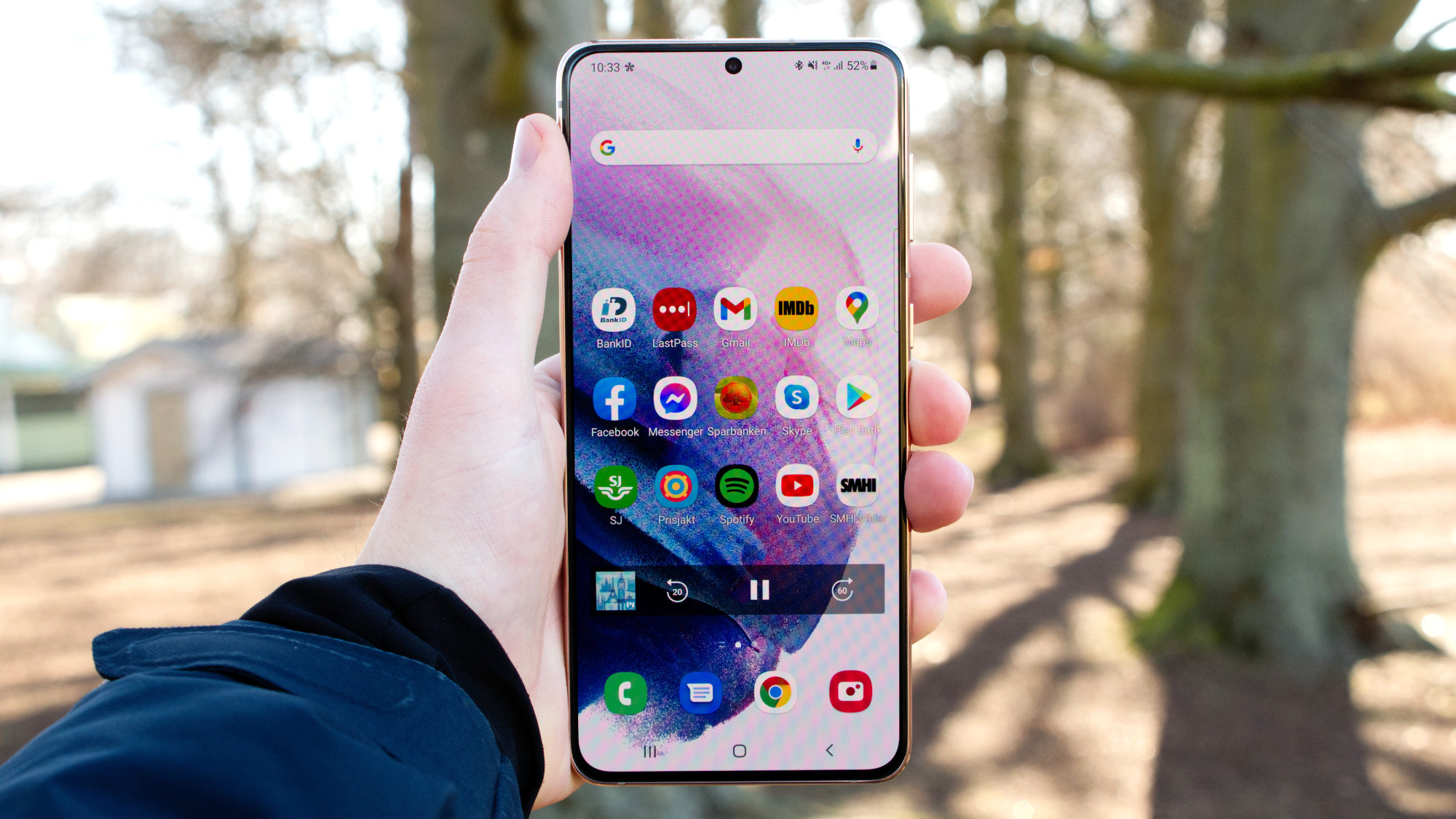 Glasbaksidan påverkar känslan av telefonen i handen. En anledning till det är telefonens vikt. S21+ väger märkbart mer än S20+, medan S21 väger nästan lika lite som S20. Det beror sannolikt på många olika faktorer, inklusive ett lite större batteri. Faktum är ändå att S21+ är en stor smartphone som väger mycket i jämförelse med Samsungs tidigare lätta smartphones. Det kan vi se både för- och nackdelar med.