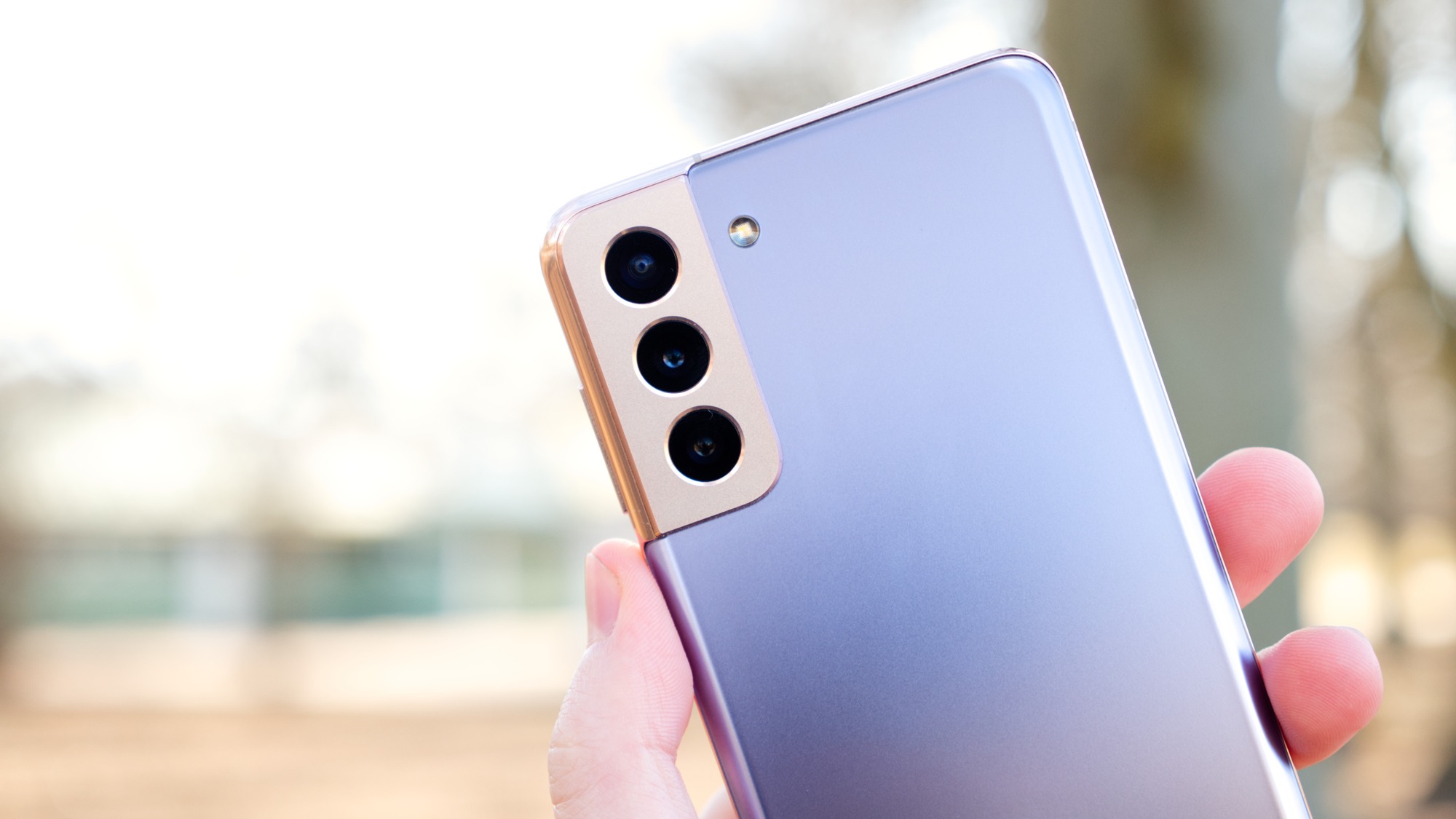 Baksidan av telefonen bjuder på en ny design för kameran. Den nya kameramodulen sträcker sig ut över sidorna och möter metallramen. Metallen runt kamerorna skiljer sig från de flesta konkurrenterna på marknaden, som har glasmoduler. Metallramen gör att S21+ undviker de problem med sprickor framför kameran som annars är vanliga. Kamerorna har givetvis skyddsglas som kan spricka men metallramen agerar som skydd. Ramen är en gnutta högre än linserna, vilket skyddar glasen från repor när telefonen till exempel ligger på ett bord. Det är en design som förhoppningsvis är mer hållbar i längden.