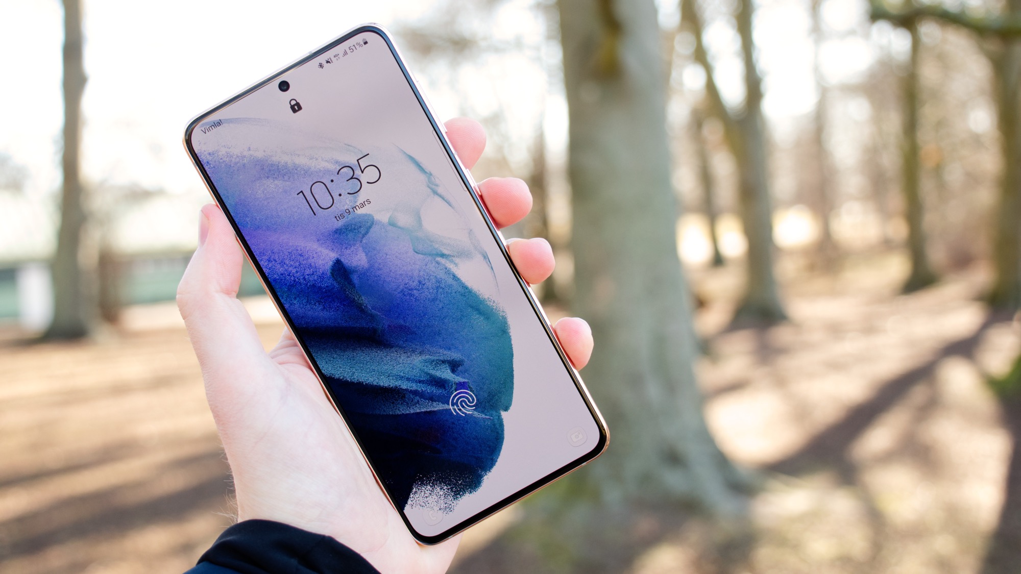I skärmen finns en ny fingeravtrycksläsare som har ett större registreringsområde och som ska vara snabbare. Vi kan inte påstå att vi märker någon betydande skillnad i systemets hastighet. Vi tycker oss däremot se mer pålitlig prestanda som ger färre felaktiga avläsningar. Den är helt enkelt mer förlåtande för hur och var vi placerar vårt finger. Vi kan också fortsatt konstatera att Samsungs ultraljudsteknik har en stor fördel. Den är mycket bättre än många optiska läsare på att känna igen fuktiga fingrar. Det ger S21+ en lite udda målgrupp: personer med handsvett.