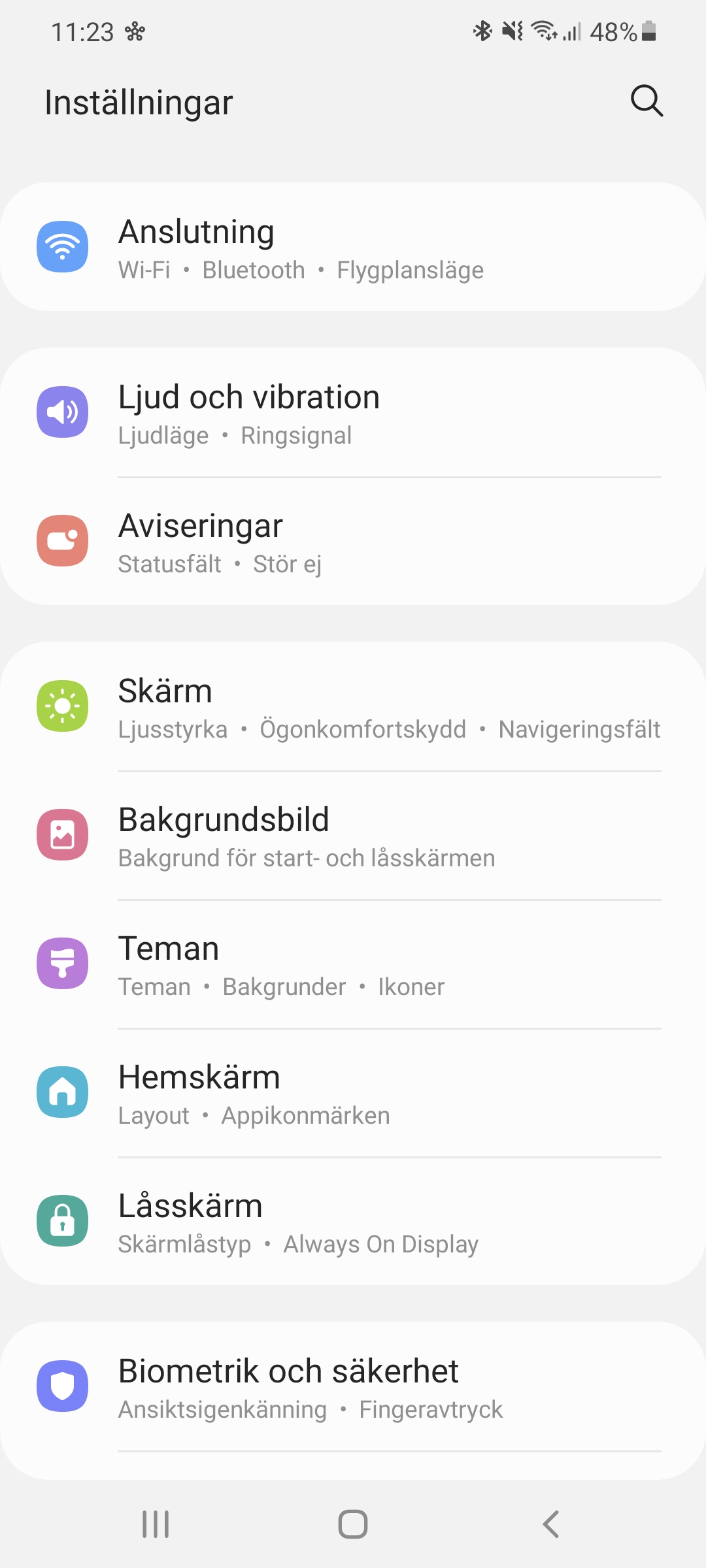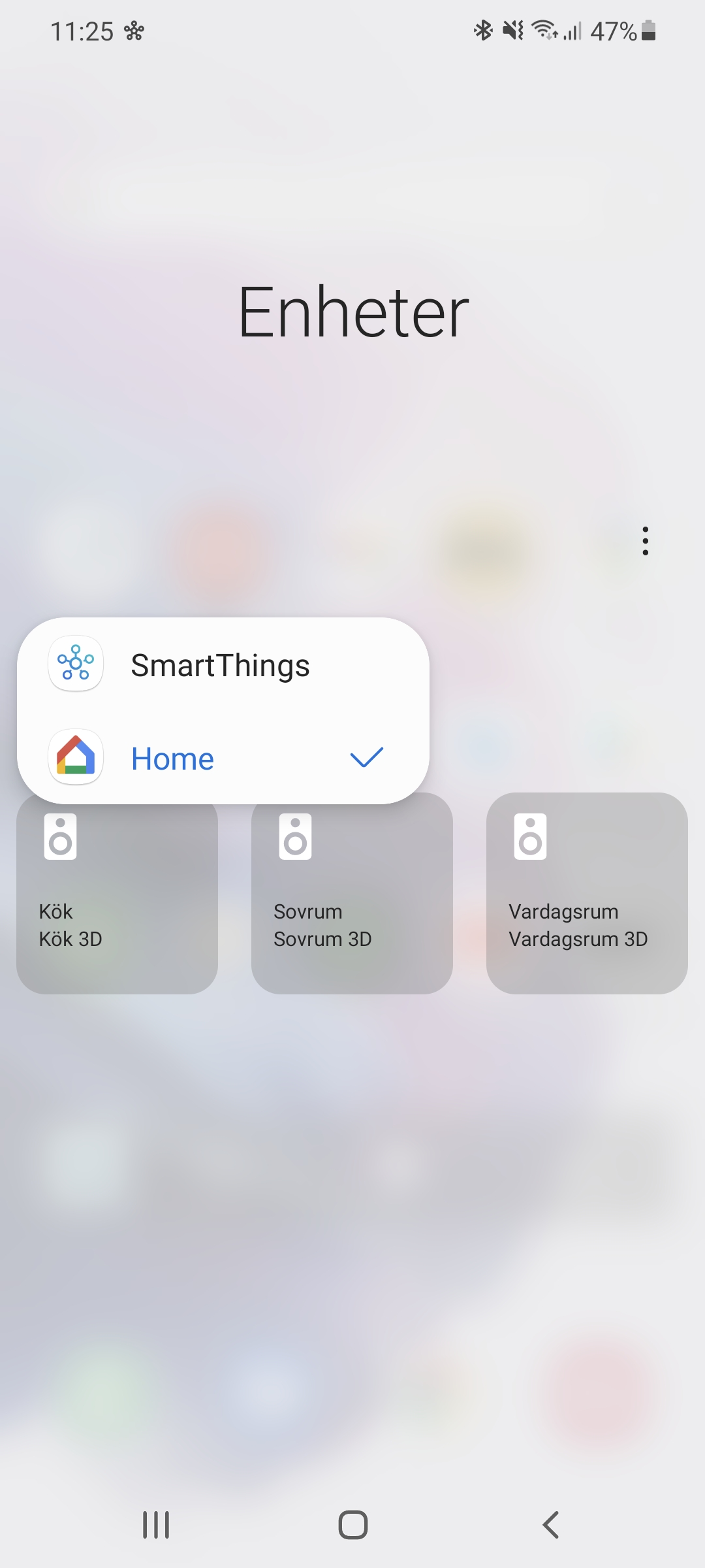 För Android 11 har Samsung gjort ett flertal anpassningar av operativsystemet. En stor nyhet i systemet är ett nytt sätt att få snabb åtkomst till smarta och uppkopplade enheter. I Android ligger denna vy bakom ett långtryck på på/av-knappen. I OneUI ligger den istället bakom en knapp som kallas Enheter, som visas när vi drar ner från toppen av skärmen. Knappen är placerad långt upp på skärmen och är därför lite svår att nå. Vi föredrar därför designen av Androids system men kan uppskatta Samsungs integrering av SmartThings i menyn.