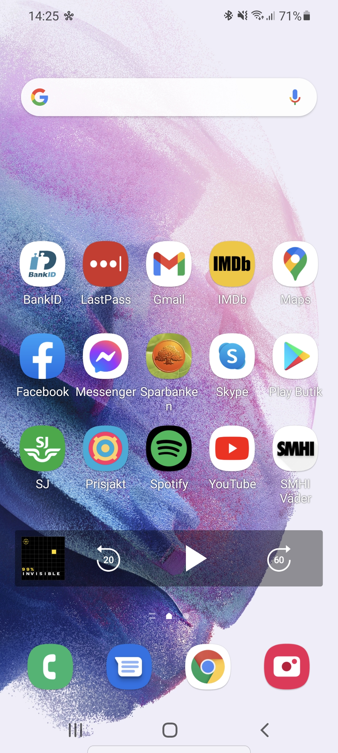 Vi har nämnt plastbaksidan men vi ska också poängtera hur väl konstruerad S21. Med en stadig metallram och minimala marginaler mellan komponenterna, känns den definitivt inte billig. Den känns däremot lätt. Den väger 20 gram mindre än iPhone 12 Pro och det märks i handen. Vi kan förstå personer som gillar en högre vikt, som ger en känsla av kvalitet. Vi kan samtidigt uppskatta en låg vikt som gör telefonen bekväm och lätt att hålla i handen under längre stunder.