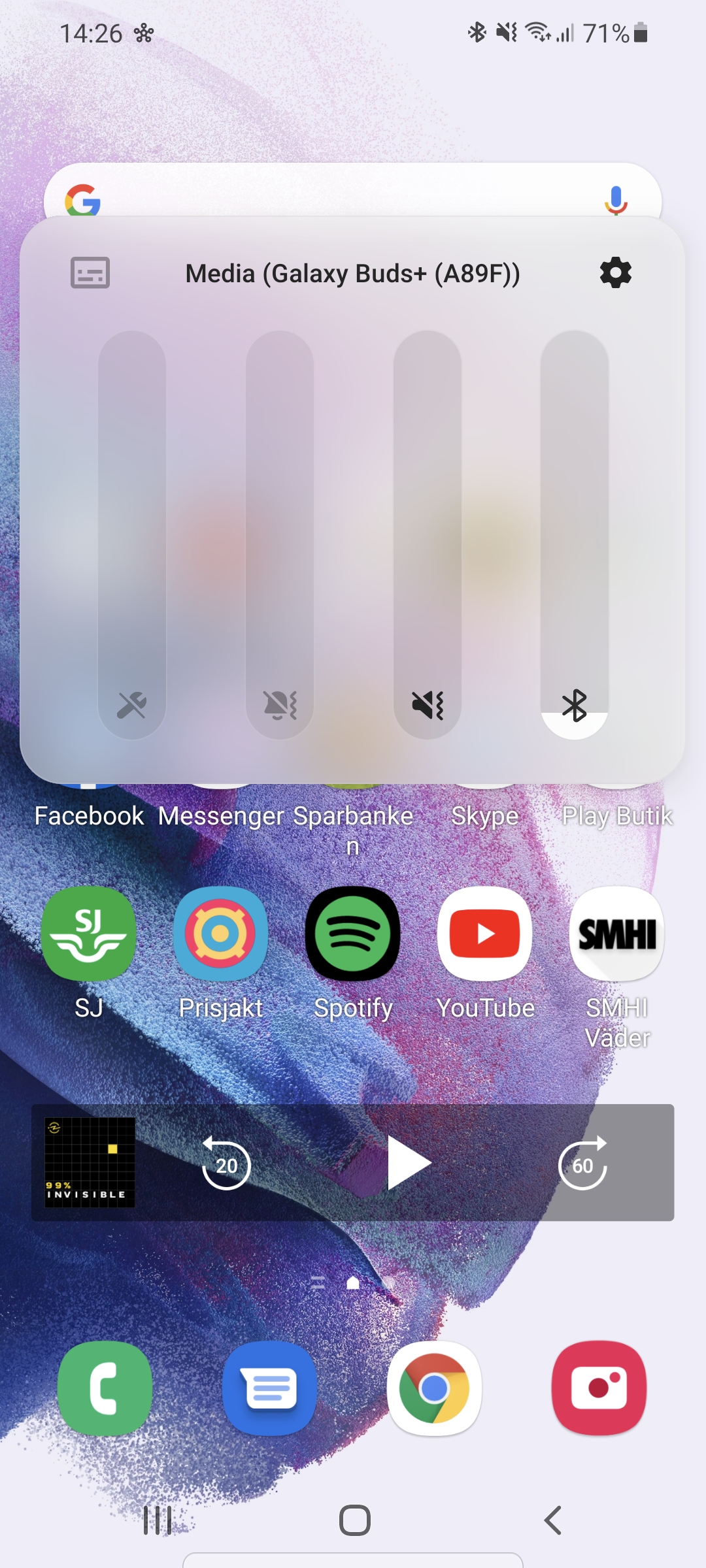 SmartThings bidrar för övrigt med kontroll över anslutna ljudenheter. När media spelas finns en notis som gör det enkelt att snabbt byta mellan anslutna enheter. Samsung har för övrigt också bytt design på systemets ljudreglage. Nu beter sig OneUI mer likt Android. Som standard justerar volymknapparna bara media-volym och kontroll över andra volymer är tillgängligt med ett extra tryck. I klassisk Samsung-stil finns det en inställning för att återställa volymknapparnas beteende till hur de fungerade förr.