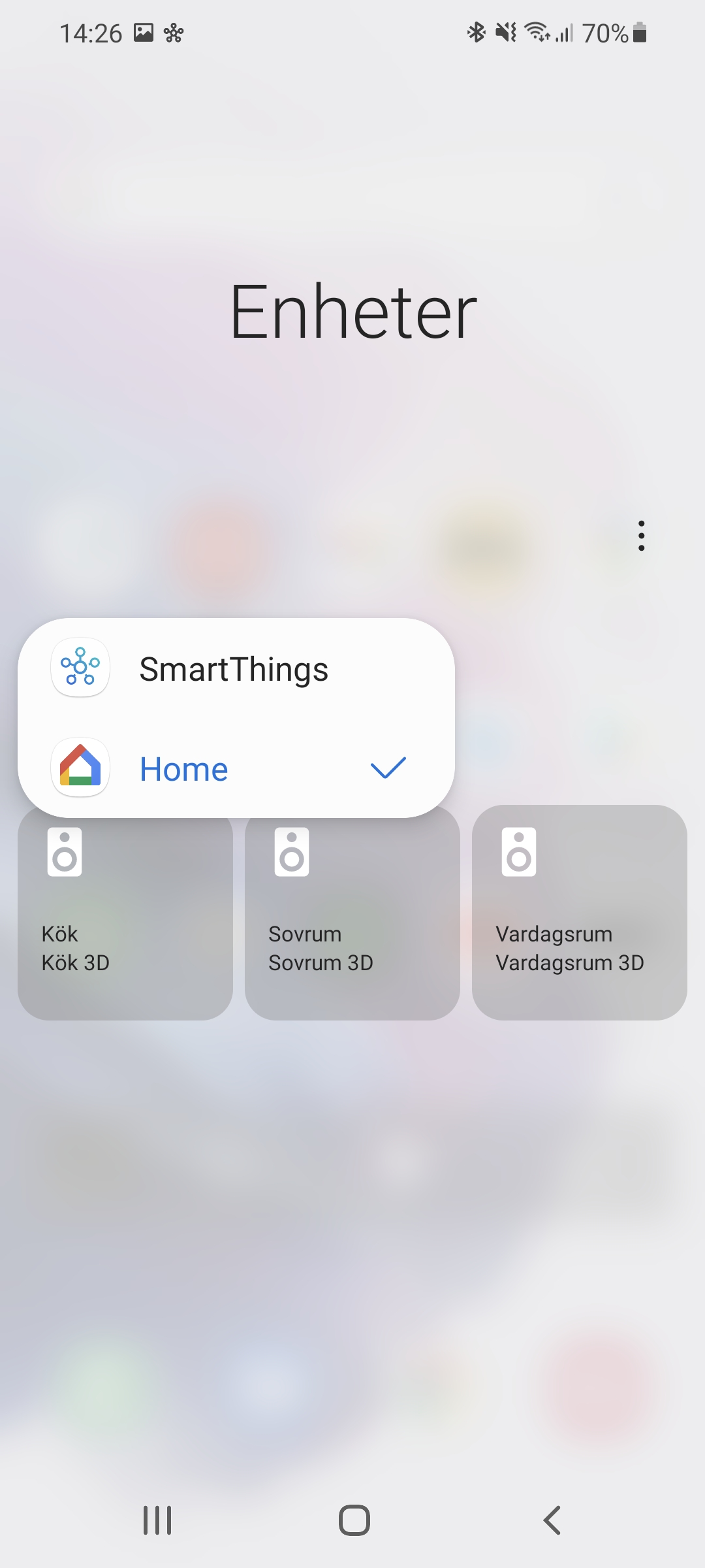 För Android 11 har Samsung gjort ett flertal anpassningar av operativsystemet. En stor nyhet i systemet är ett nytt sätt att få snabb åtkomst till smarta och uppkopplade enheter. I Android ligger denna vy bakom ett långtryck på på/av-knappen. I OneUI ligger den istället bakom en knapp som kallas Enheter, som visas när vi drar ner från toppen av skärmen. Knappen är placerad långt upp på skärmen och är därför lite svår att nå. Vi föredrar därför designen av Androids system men kan uppskatta Samsungs integrering av SmartThings i menyn.