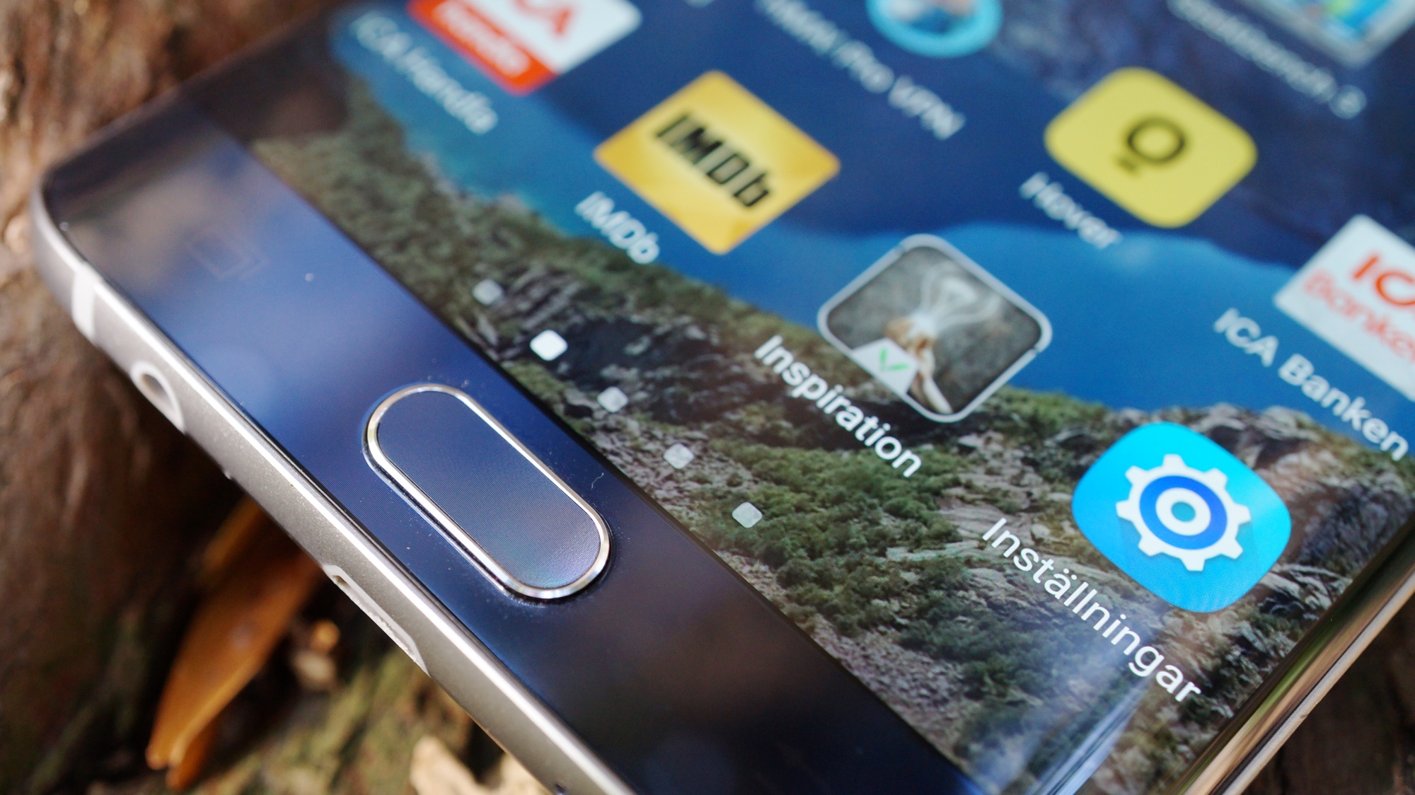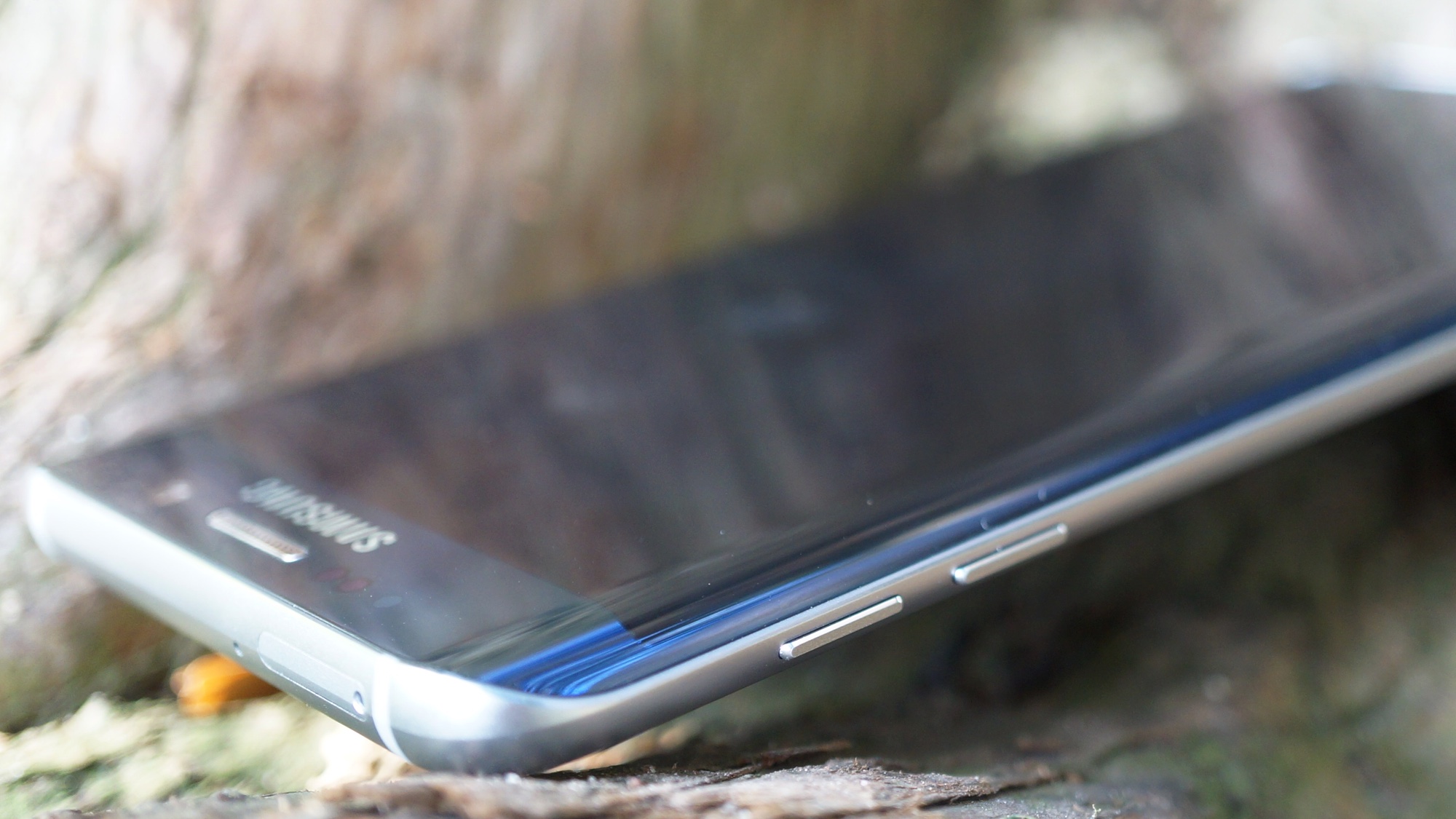 Eftersom telefonens skärm är rundad runt både höger och vänster sida finns det inte lika gott om utrymme för hårdvaruknappar på dess metallklädda sidor än det gör på den platta Galaxy S6. På höger sida sitter trots det en tunn på/av-knapp och på vänster sida hittar vi två knappar för volym upp respektive ner. Knapparna ger gott om haptisk feedback och är lätta att använda och känna sig fram till.