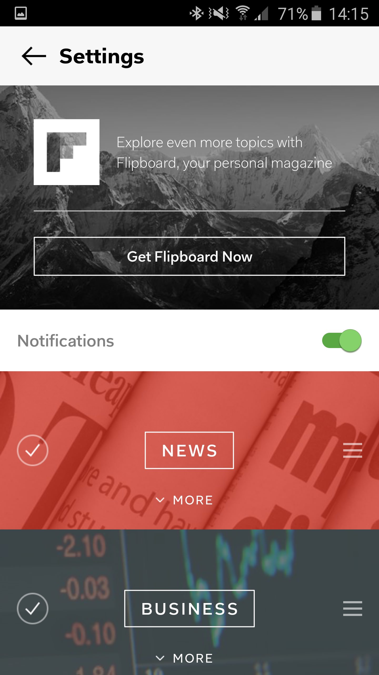 Flipboard levererar relevanta nyheter av hög kvalitet men har ett stort problem. Det tar ofta irriterande lång tid för nyheterna att uppdateras. Även med en riktigt bra uppkoppling kan det ta mer än en sekund. Detta kanske låter som väldigt lite tid, och det är det också. Men poängen med att ha en nyhetskälla tillgänglig direkt från hemskärmen är att få snabb tillgång till nyheter. När det tar lång tid att ladda känns det som om denna poängen snabbt försvinner. Det hade varit trevligt om det fanns ett alternativ att ladda nyheter i bakgrunden så man inte behöver vänta på nyheterna att ladda när man är redo att läsa.