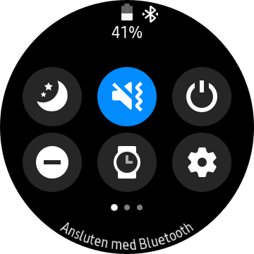 Samsung har haft en Alltid på-skärm i sina klockor sedan Gear S2, från år 2015. Här får vi en dimmad urtavla som kan visa färger och ikoner, vilket vi uppskattar. En positiv funktion är också genvägen i snabbinställningar som snabbt låter oss slå på eller av skärmens Alltid på-läge. När en app är öppen visas en enkel version av urtavlan, med en hint av den öppna appens bakgrund synlig. Detta är något vi såg på Apple Watch Series 5, som skapar ett bättre flyt när vi tänder skärmen. Galaxy Watch tenderar dock att stänga appar, så vi kan inte lita på att de är kvar nästa gång vi lyfter armen.
