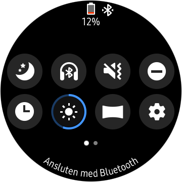 Ett svep nedåt från toppen av skärmen erbjuder snabbinställningar och en batteriindikator samt information om huruvida klockan är uppkopplad genom Bluetooth eller Wi-Fi. I appar är det dock vertikal navigation som gäller, vilket inte alltid är lika intuitivt på den lilla skärmen.
