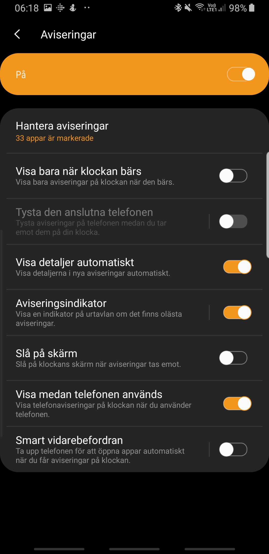 På telefonen kopplas klockan upp mot Galaxy Wearable-appen som erbjuder en robust mängd av klockans interna inställningar. Det är bra eftersom det ofta är lättare att ändra grundinställningar på en större skärm.