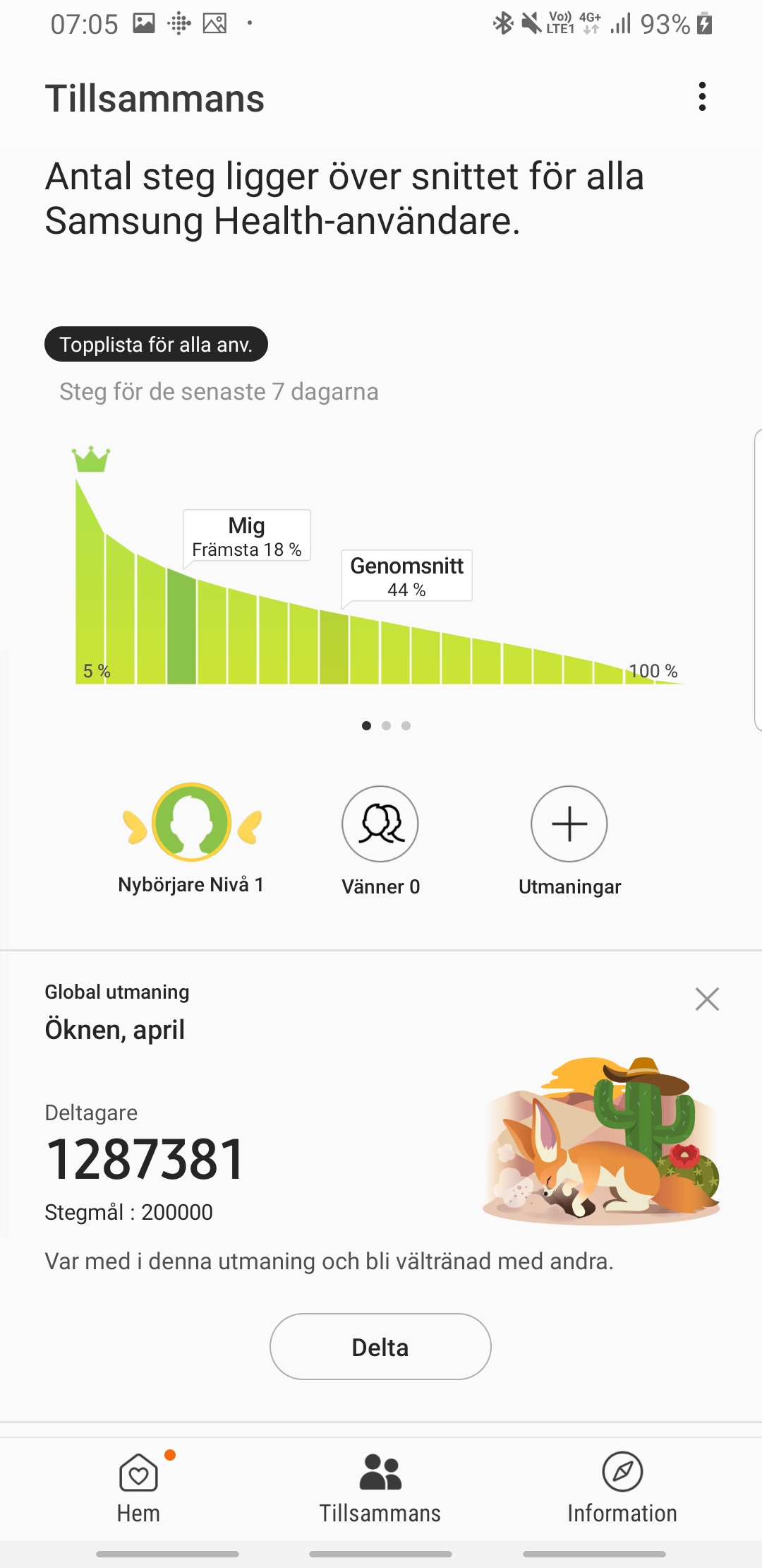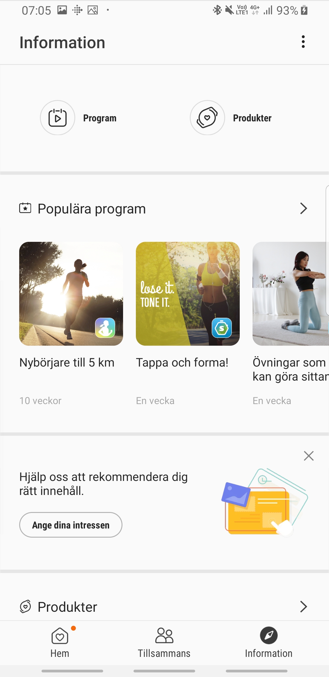 Som komplement används Samsung Health för att synkronisera den hälsodata och de träningspass som klockan samlar in under dagen. Innehållet bjuder på en enkel överblick med möjlighet att dyka ner i en mer detaljerad analys. Här ingår också hälsorekommendationer samt enkla program för att motivera till diverse träningsmål, så som fem kilometer löpning eller morgonstretching.