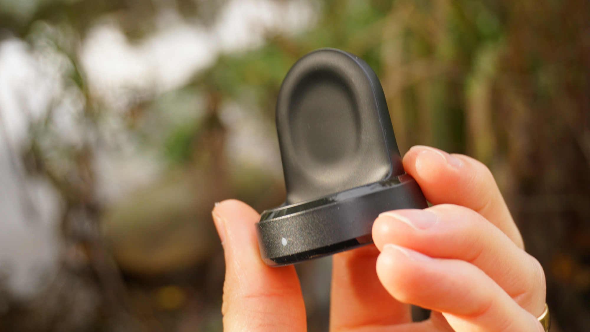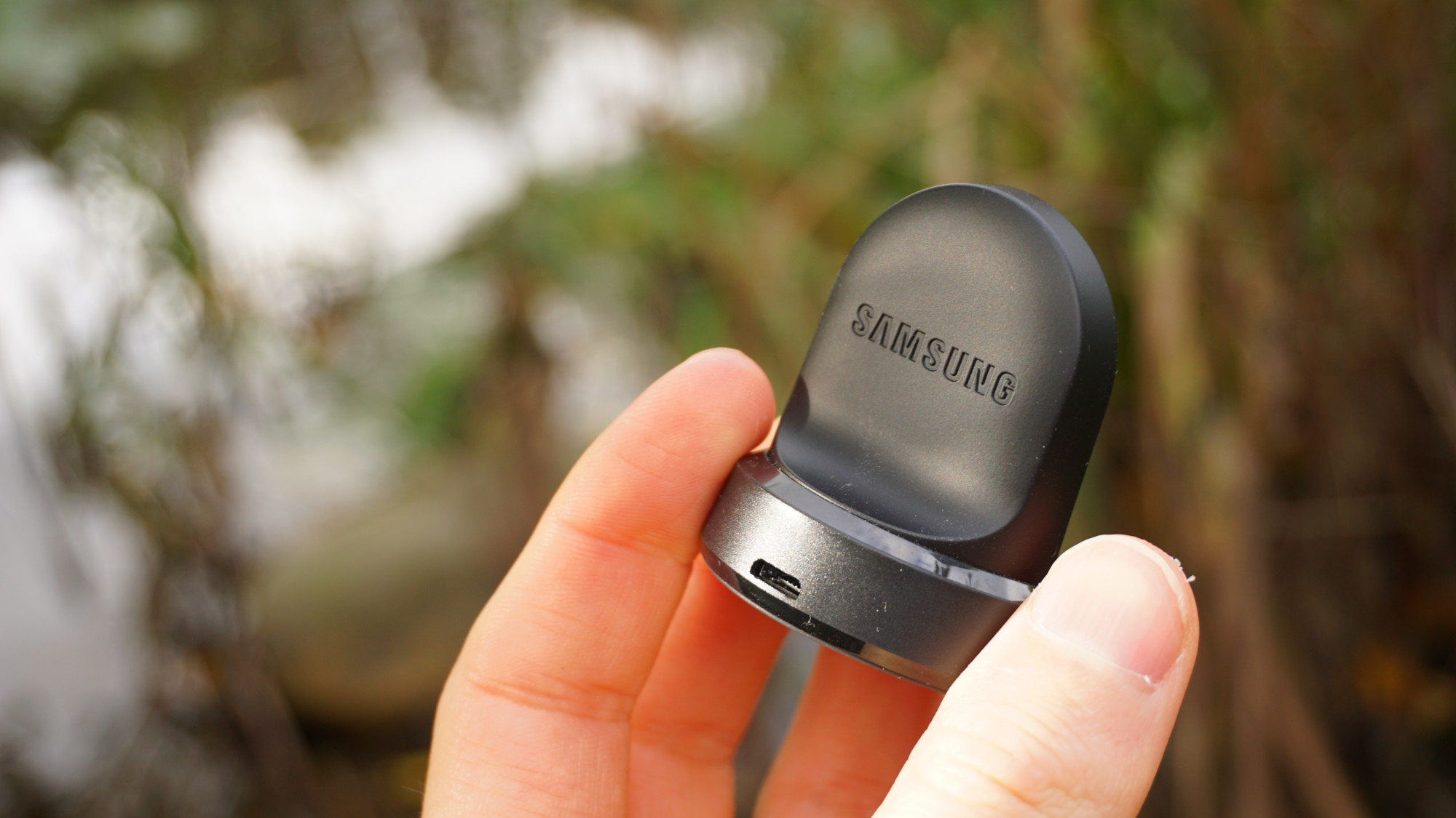Galaxy Watch laddas trådlöst genom Qi-standarden. Det gör det lätt och smidigt att placera klockan på laddaren. Det är också enkelt för tredje parter att sälja egna laddare till klockan. Tyvärr innebär den mindre ytan att trådlösa laddare för telefoner inte fungerar, på grund av att de mottagande spolarna på klockan är för små. Den medföljande laddaren är i alla fall smidig att använda och lämnar Galaxy Watch i ett upprest läge. Tyvärr används fortfarande micro-USB, istället för USB-C, vilket innebär att laddaren kräver en annan kabel än moderna telefoner. Samsung har inte heller implementerat någon typ av snabbladdning för Galaxy Watch och det tar cirka 2 timmar och 15 minuter att ladda till 100 procent från 15 procent. Jämfört med billigare smartklockor med magnetiska laddkontakter är det dubbelt så lång tid, vilket kräver planering för att inte missa steg eller sömnmätning