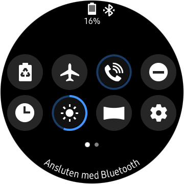 Samsungs operativsystem Tizen är anpassat efter den runda skärmen och matchar AMOLED-tekniken väl med gemytligt mörka bakgrunder. Jämfört med andra smartklockor, som antingen placerar notiser över eller under klockansiktet, hittar vi dem här till vänster. Detta förenklar navigeringen med den roterande boetten, som då lätt och effektivt bläddrar mellan notiserna och widgetar, som ligger till höger. Snabbinställningar nås genom att svepa ned från toppen av skärmen. Dessa nås genom hela gränssnittet, vilket är en fördel för att snabbt stänga av Wi-Fi eller slå på “Stör ej”-läget.