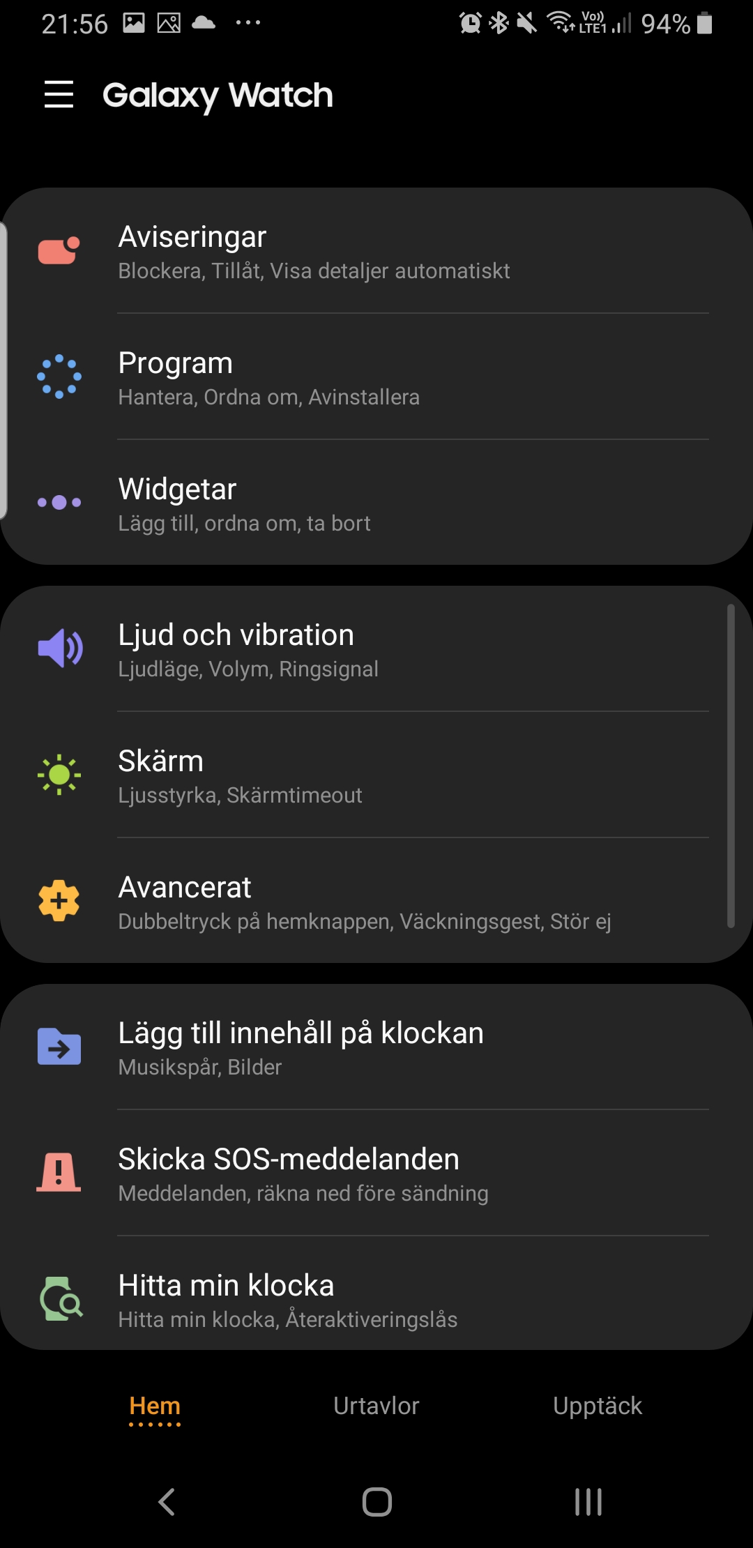 Läs mer om eSIMGalaxy Watch använder Wi-Fi flitigt för att förlänga kopplingen till telefonen på avstånd. Det är enkelt att koppla till nya nätverk tack vare tangentbordet, som gör det smidigt att fylla i lösenord. eSIM tar konceptet längre, där klockan kan ta emot notiser och samtal även i skogen, när telefonen ligger kvar hemma. eSIM, eller Embeded SIM, är ett inbyggt SIM-kort som kan aktiveras genom mobiloperatörer som stödjer tjänsten. Klockan får då samma telefonnummer som mobiltelefonen och kan självständigt ringa och ta emot telefonsamtal. I skrivande stund är det operatörerna Tre, Tele2, Telenor och Telia som har stöd för eSIM på Samsung Galaxy Watch. Det går att aktivera tjänsten på både Android och iOS med samma begränsningar i funktionalitet som när klockan ansluts via Bluetooth.