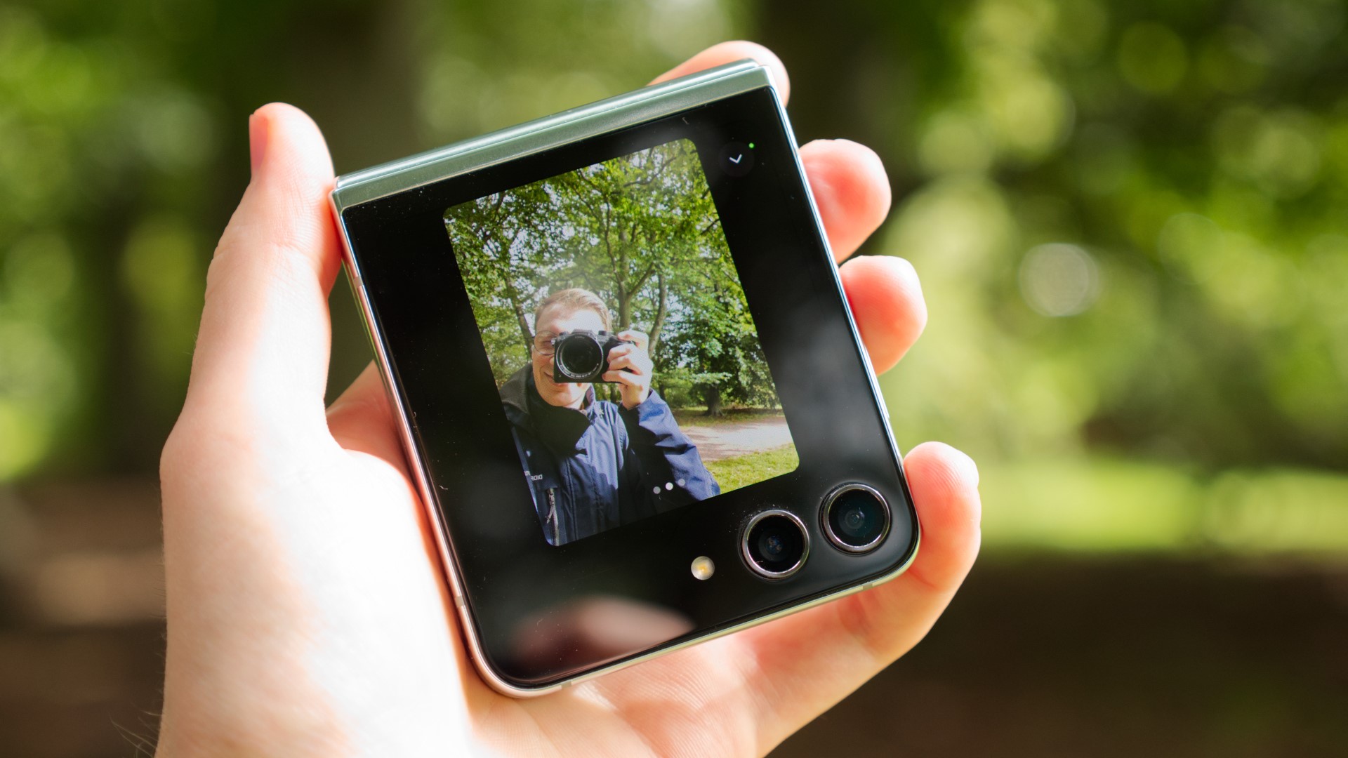 En stor fördel med Galaxy Z Flip 5:s nya design är den mycket större skärmen på utsidan. Det gör det enkelt att ta selfies med huvudkameran. Huvudkameran ger betydligt högre kvalitet är den lilla selfiekameran på insidan.