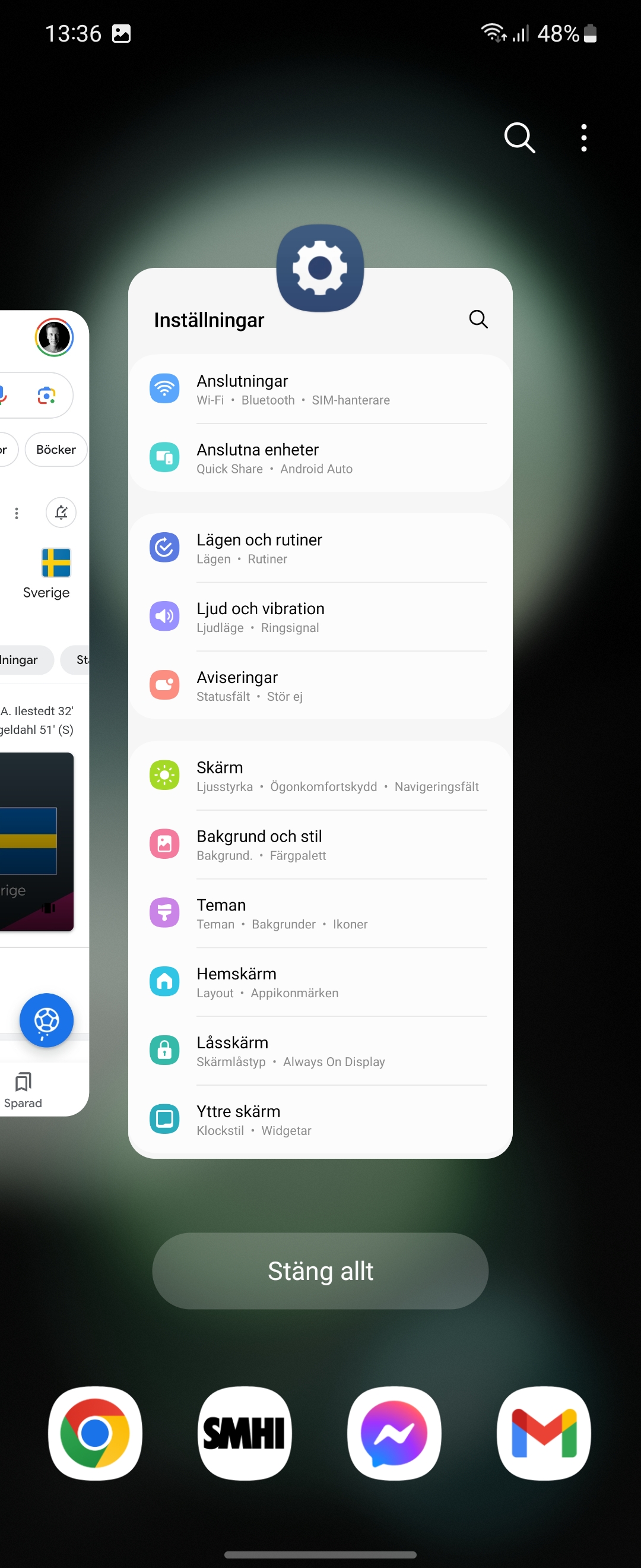 Det går egentligen att använda nästan vilken app som helst på den yttre skärmen. Medan det är enkelt att göra med Razr 40 Ultra, är det krångligt på Z Flip 5. Vi behöver först ladda ner en Samsung-app kallad Good Lock från Galaxy Store, sen aktivera en modul kallad MultiStar, innan vi kan aktivera en funktion kallad Launcher Widget. Härifrån kan vi välja vilka appar som ska vara tillgängliga. De flesta fungerar bra. Vi kan till exempel snabbt öppna BankID och verifiera oss med fingeravtrycksläsaren eller visa vårt digitala ID-kort utan att öppna telefonen, vi kan visa tågbiljetter, använda podcast- och musikappar och svara på meddelanden i Facebook Messenger med ett fullstort tangentbord. Det finns ganska mycket vi kan göra från den yttre skärmen.