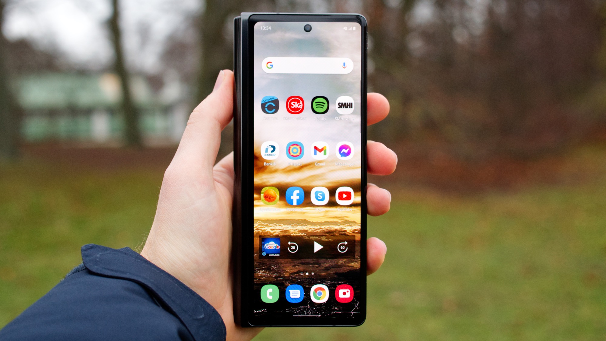 Galaxy Z Fold 2 har en lite konstig design. Det gör den klumpig men ändå förvånansvärt lättanvänd i sitt ihopfällda format. När den viks ut ger den stora inre skärmen stora möjligheter. Här är det dock viktigt att komma ihåg att skärmen är skör och dyr. Med ett pris på 8 500 kronor för ett skärmbyte, är skador på skärmen något vi gärna undviker. Den ömtåliga designen gör oss helt enkelt lite mer paranoida över hur vi håller och använder telefonen. Utan vattenskydd är det dessutom svårt att våga ta ut den ur fickan när det regnar. Det är ett problem som är svårt att undvika med dagens teknik. Med det sagt är Galaxy Z Fold 2 en futuristisk mobil som har en design som får de flesta smartphones att se ut som de tråkiga fyrkanter de faktiskt är. Den häftiga tekniken är inte alltid praktiskt, men den är häftig.