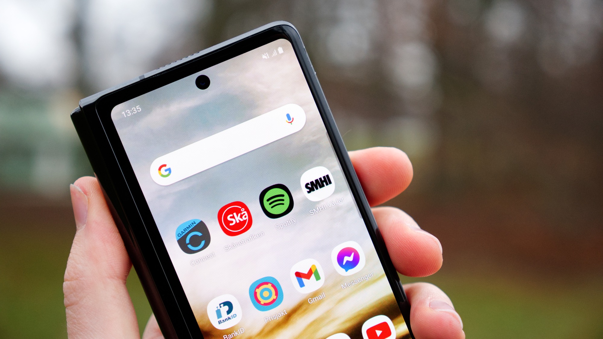 Startskärmen är för övrigt separat mellan de två skärmarna. Alla inställningar är separata och kan bara styras från de respektive skärmarna. Om vi vill byta bakgrund för den yttre skärmen går det alltså bara att göra från den yttre skärmen och vice versa. Det betyder att även genvägar och widgets kan vara helt olika mellan skärmarna. Det är inte nödvändigtvis helt enkelt att förstå men för användare som gillar att anpassa sin smartphone ger det stora möjligheter. Vi ser till exempel potential i att ha informativa widgets på den yttre skärmen och ha mediatunga genvägar på den inre skärmen, för att optimera startskärmen för de olika skärmarnas respektive styrkor.