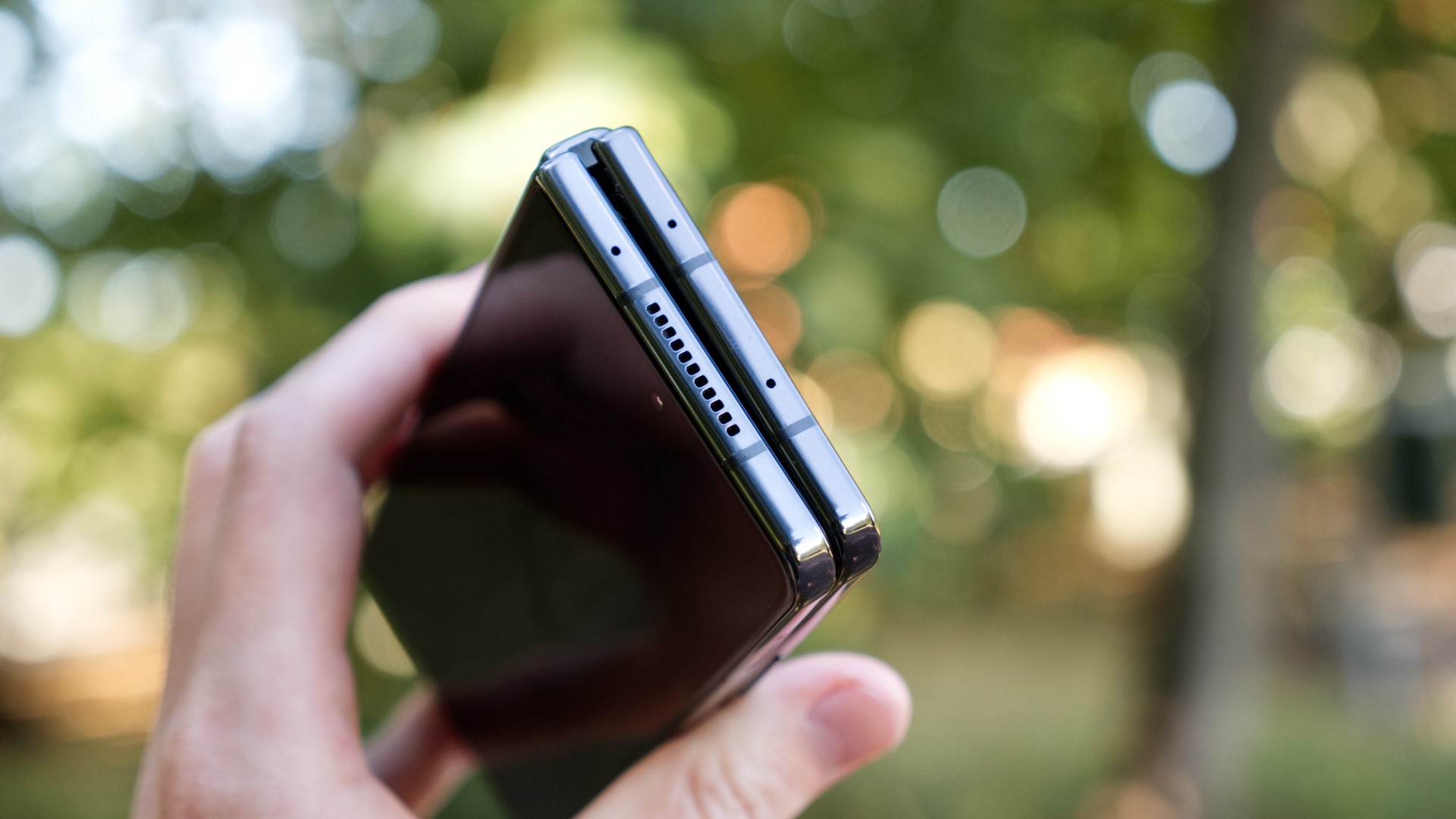 Det finns inga betydande funktionella nyheter i designen av Fold 4. Den har ingen hörlursport men erbjuder trådlös laddning med omvänd trådlös laddning och en IP68-klassad vattentät design. En liten nyhet detalj som är värd att notera är att föregångaren bara hade en nanoSIM-plats. Fold 4 har dubbla nanoSIM-platser, utöver stöd för ett eSIM.