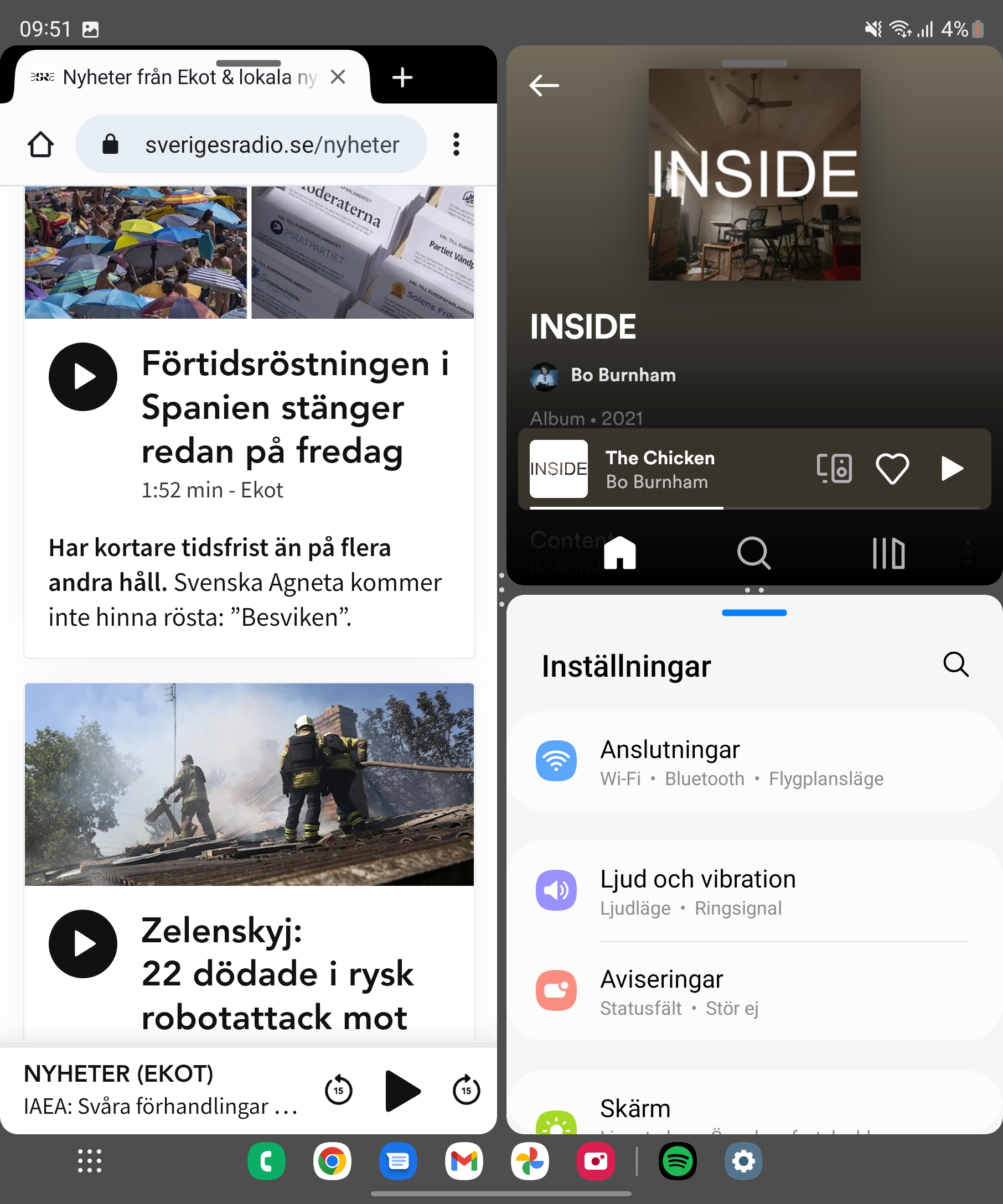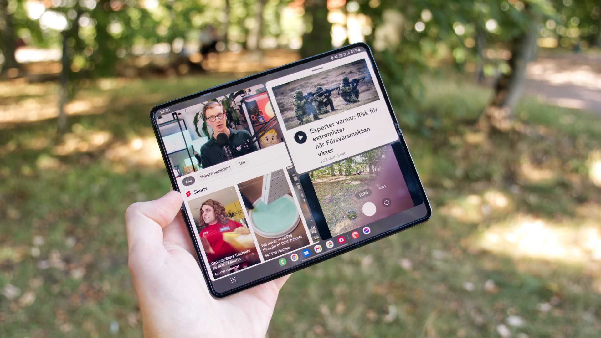 Multitasking på Galaxy Z Fold 4 har blivit så enkel att vi utan att överdriva kan säga att vi använder det dubbelt så ofta som vi gjorde med Z Fold 3. På tal om föregångaren finns för övrigt fortfarande Samsungs sidopanel kvar. Den känns dock till stor del överflödig med det nya aktivitetsfält.