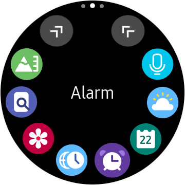 I tillägg kan boetten även bläddra upp och ner i appar och menyer samt ställa in tiden på alarm. På den lilla skärmen är det ytterst tacksamt att ha en lättåtkomlig och praktisk lösning för navigering. Den nedre knappen agerar hemknapp och vid långa tryck som strömknapp. Användaren kan själv välja en genväg för dubbeltryck på hemknappen och den övre knappen är en tillbakaknapp som aktiverar Samsung Pay vid långtryck.