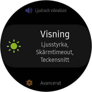 Samsung Gear S3 har en rund AMOLED-skärm på 1,39 tum med en upplösning på 360 x 360. Den slår alltså inte den billigare Huawei Watch GT vad gäller pixeltäthet, eftersom den har samma skärmstorlek med 454 x 454 i upplösning. Pekskärmens respons är bra och klockan tänds när vi lyfter på armen, pekar på den eller snurrar på boetten. Klockan har en maximal ljusstyrka på 1 000 nits i vårt test, vilket innebär att den är behaglig att använda även i solljus. Det är ett stort plus jämfört med billigare konkurrenter så som Huawei Watch GT, som har en maximal ljusstyrka på 400 nits. Ljusstyrkan regleras automatiskt baserat på omgivningen men det går även att välja på en skala från ett till tio. I mörka miljöer har klockan dock svårt att välja en behaglig ljusstyrka och kan lätt störa sömnen om inte nattläget aktiveras.