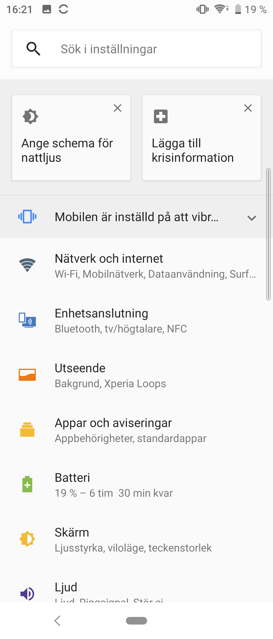 Läs mer om mjukvaranMed Android 9 som grund har Sony Xperia 10 ett modernt och kraftfullt operativsystem att förstå sig på. Sonys mjukvara är generellt ganska enkel och fri från konstiga funktioner och anpassningar. Nytt för i år är att Sony har hoppat på Googles nya navigeringssystem för Android. Istället för tre knappar finns nu en avlång markör och en bakåtknapp. Ett svep upp från markören kan leda till hemskärmen, Senaste appar och till Alla appar, beroende på hur långt svepet är. Det gör att det nu går att gå direkt till Alla appar-vyn från vilken del av operativsystemet som helst och att det inte längre finns någon knapp längst ner till höger som ibland kunde vara svår att nå.