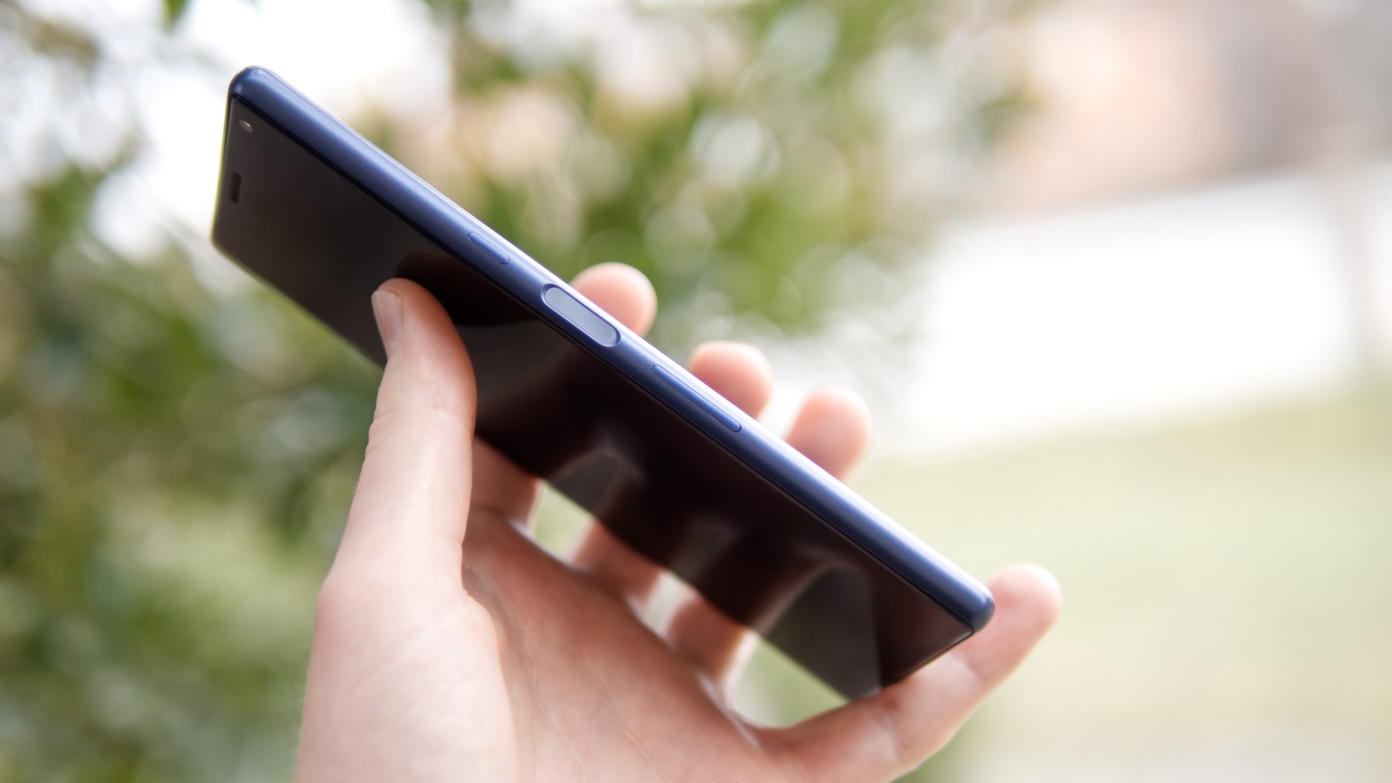 Längs höger sida finns en på/av-knapp, en fingeravtrycksläsare och två volymknappar. Fingeravtrycksläsaren är mycket lik tidigare sidmonterade läsare från Sony men nu är den alltid aktiv. Den har alltså ingen inbyggd knapp utan kan användas för att låsa upp mobilen, helt utan att någon knapp trycks in. Läsaren är pålitlig men är inte särskilt snabb eftersom hela telefonen har prestandaproblem. Knapparna är tyvärr också ganska dåliga. De är väldigt platta längs sidan och kan därför vara svåra att känna sig fram till. De låter en hel del när de trycks in men ger ändå inte särskilt bra fysisk återkoppling. Det gör dem svåra att använda.
