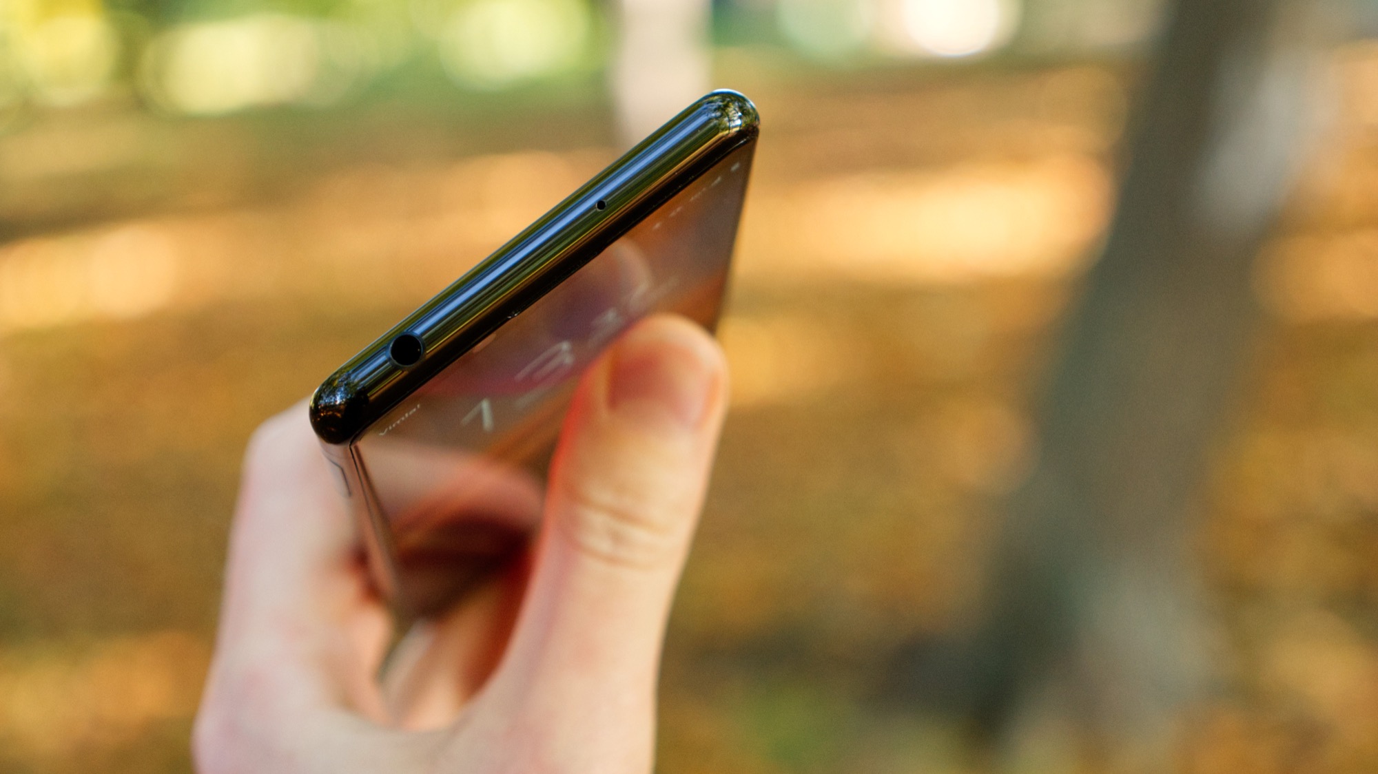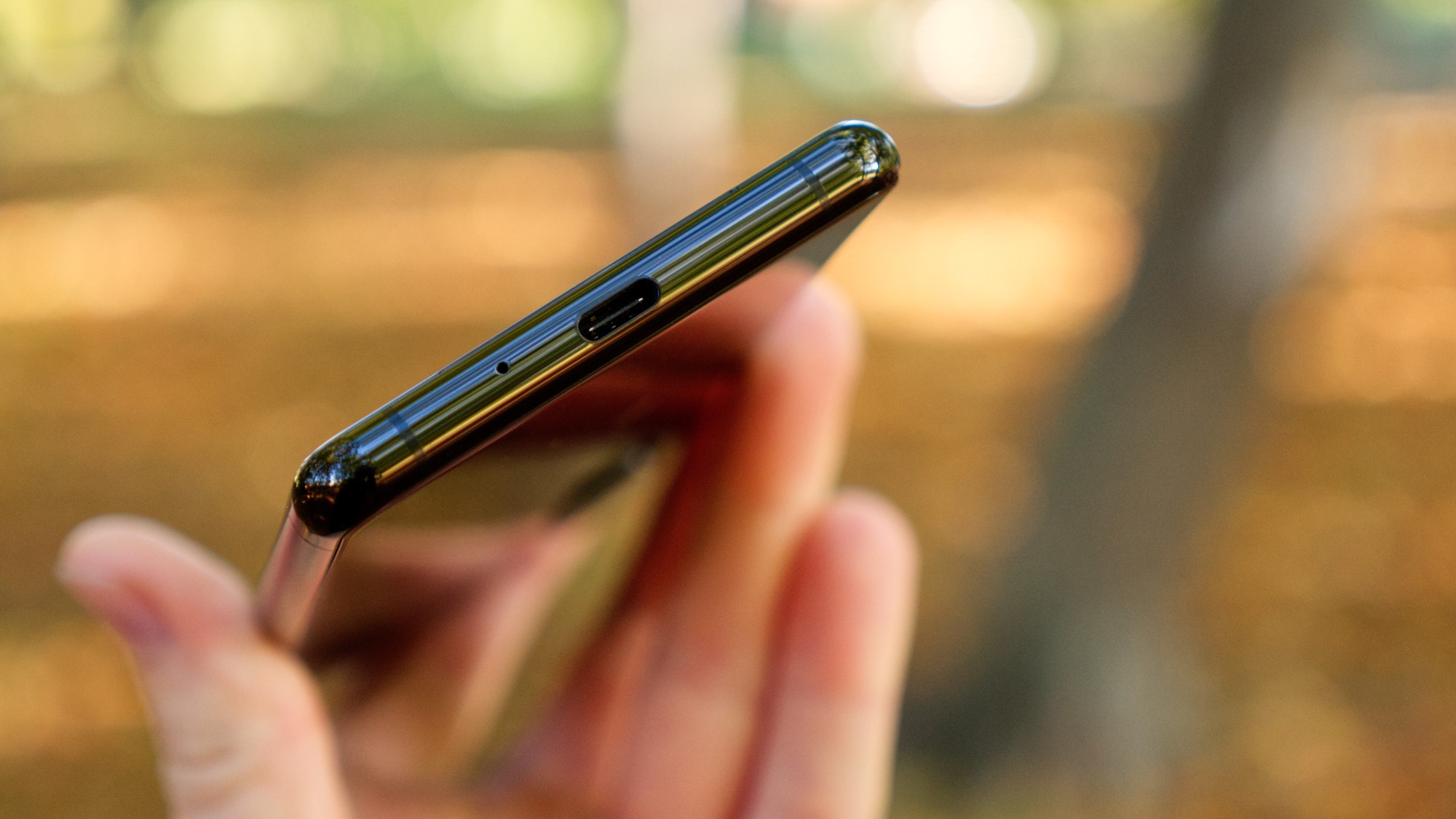 På ovansidan finns en sekundär mikrofon och en hörlursport. Det gör Xperia 5 II till en av extremt få mobiler i klassen med den gamla anslutningen. Det är särskilt imponerande i en så liten och funktionspackad mobil som Xperia 5 II är. Längs vänster si da finns en kortläsare som kan tas ut utan SIM-kortsverktyg och som har plats för dubbla nanoSIM-kort eller ett microSD- och ett nanoSIM-kort. Stödet för microSD-kort är ännu en funktion som skiljer Xperia 5 II från vissa konkurrenter. Undersidan har slutligen en mikrofon och en USB Typ C-port.