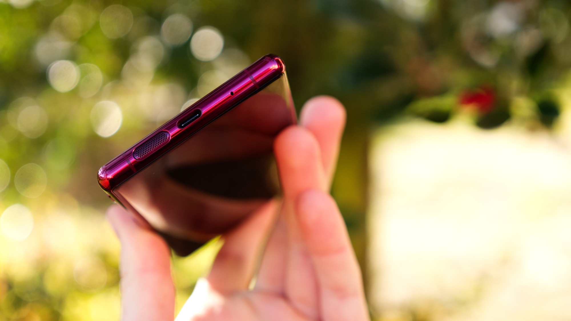 På ovansidan finns en sekundär mikrofon och på vänster sida finns en kortläsare. I vanlig ordning kan vi hurra över att Sony är ensamma om att ha en kortläsare som inte kräver ett verktyg för att matas ut. Vi är samtidigt lite trötta på att Sony fortsätter att starta om telefonen så fort kortläsaren dras ut. När den dragits ut har den i alla fall plats för dubbla nanoSIM eller ett microSD- och ett nanoSIM-kort. Längs undersidan finns en USB Typ C-port, en högtalare och en mikrofon. Här finns alltså ingen hörlursport. Sony inkluderar dock en adapter, vilket definitivt inte är en självklarhet.