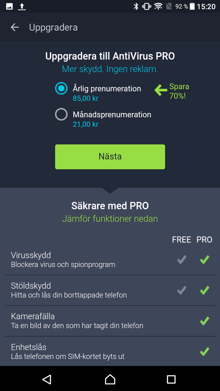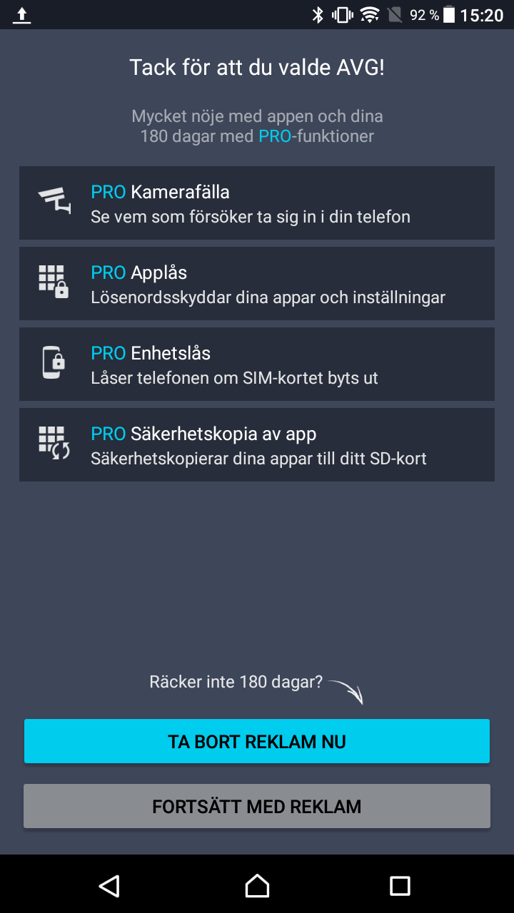 Som vanligt fortsätter Sony att förinstallera antivirus-program och andra reklamappar på sin telefon. AVG Protection är en onödig app som bara riskerar att förvirra användare och sälja på dem onödiga tilläggstjänster. Appen går att inaktivera men borde intre vara förinstallerad från första början. Utöver det fortsätter Sony att installera ett flertal egenutvecklade appar som är överflödiga eller vars värden är svåra att motivera. Vi hade gärna sett Sony sluta förinstallera appar som användare lika gärna kan installera från Google Play, om de så skulle vilja.