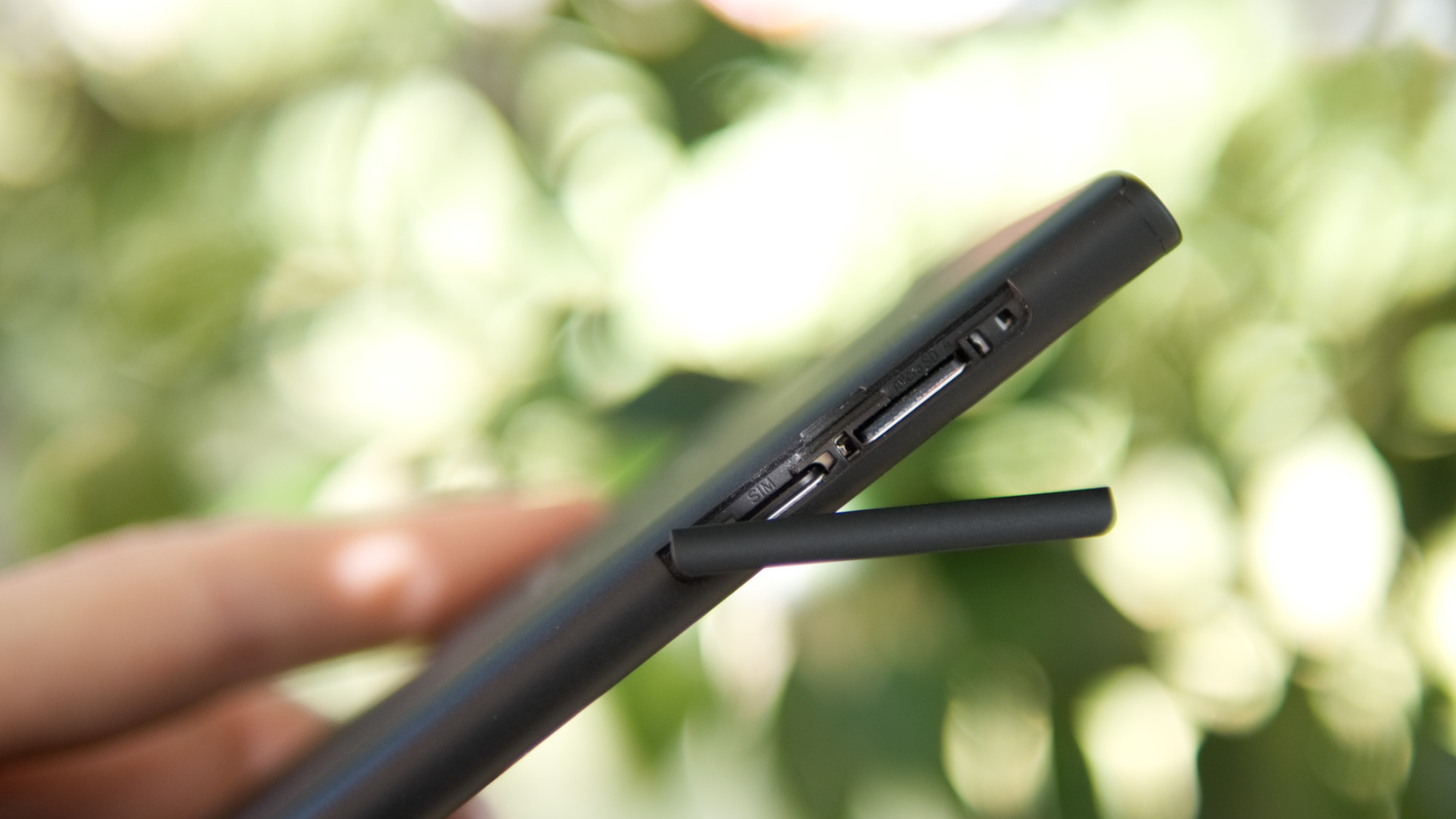 Telefonens bakstycke har en rundad design som gör att den är bekväm att hålla i handen. Det går dock inte att komma undan faktumet att telefonens stora skärm gör den relativt klumpig. De hårda kanterna längs undersidan gör också att telefonens nedre hörn kan kännas lite obekväma i handen.
