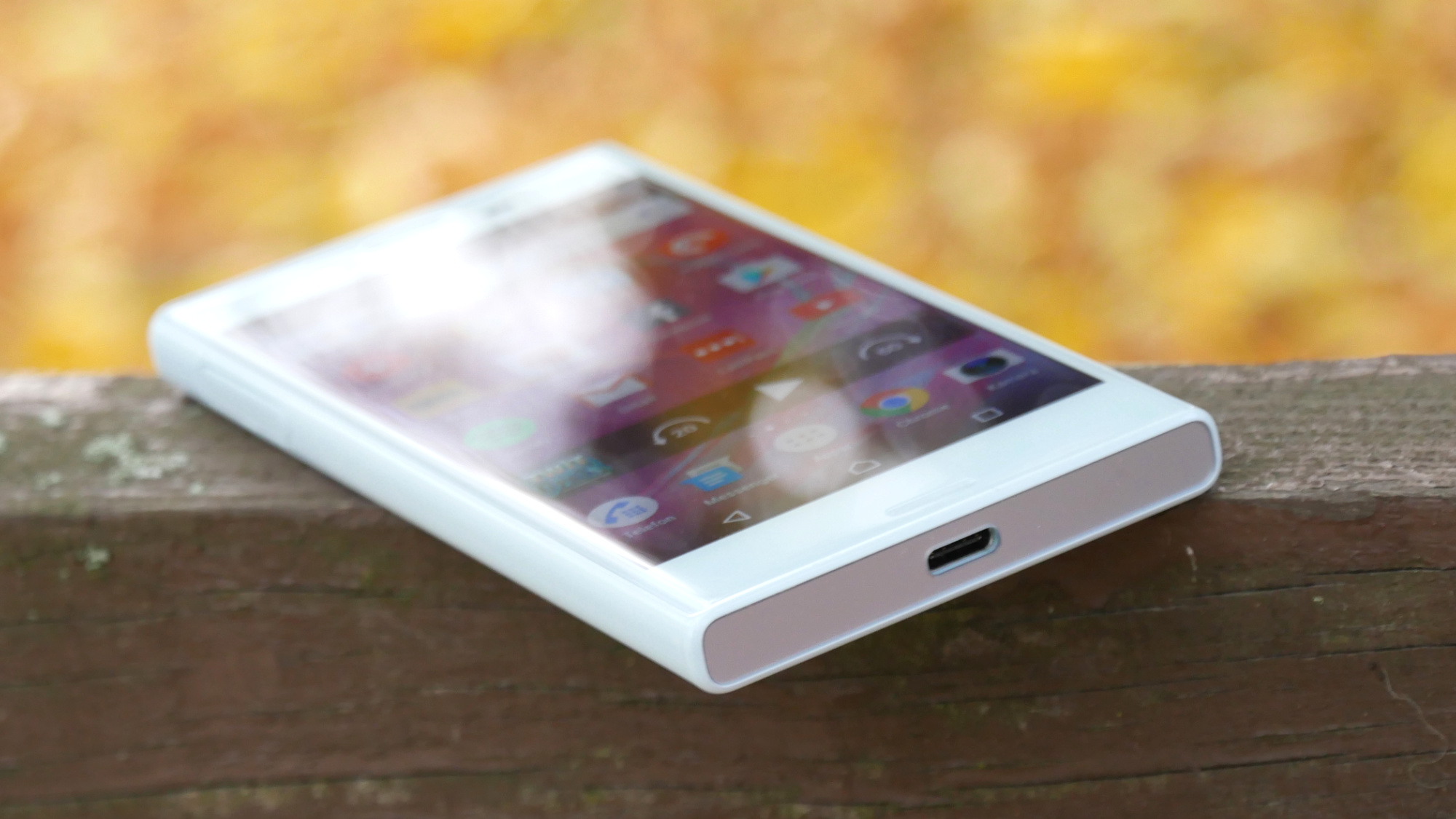 Ovan- och undersidan av telefonen har en lite mer avskuren och kantig design, om vi jämför med Xperia Z5 Compact. Här finns nu två helt platta sidor som använder sig av ett matt plastmaterial. Kortsidorna kompletterar resten av telefonens glatta och blanka material på ett intressant sätt.