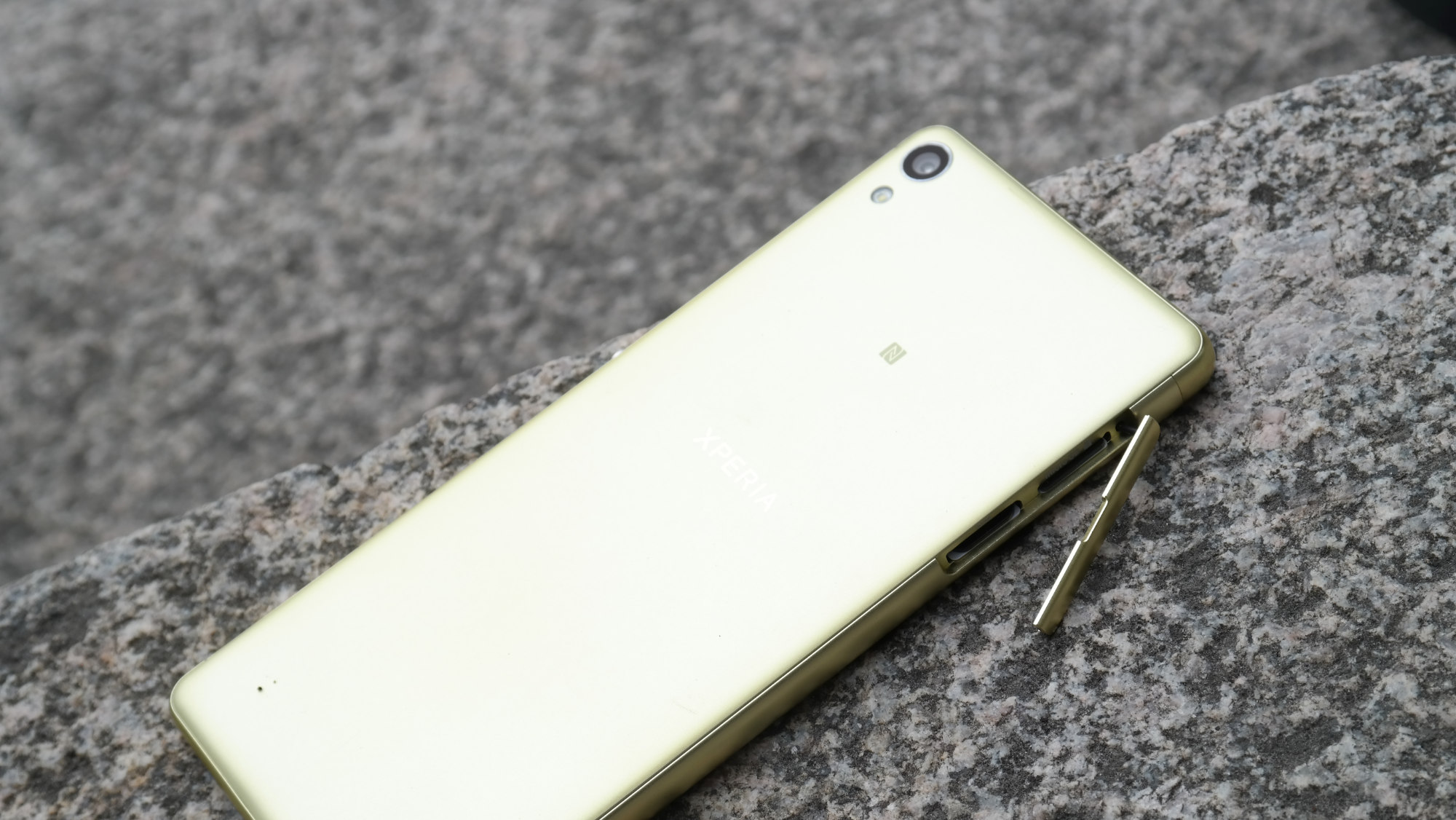 Läs mer om hårdvaranSony Xperia XA har en baksida som täcks av ett stycke plast. Bakstycket har en matt finish som, i vårt fall, har en matt men limegrön färg. Utöver ett Xperia-varumärke och en liten NFC-logga är kameran och dess tillhörande lampa de enda komponenter som syns på telefonens baksida. Kameran är placerad långt upp i det översta vänstra hörnet och lyckas gömma sig innanför telefonens kropp, likt alla andra Sony-telefoner från de senaste åren.