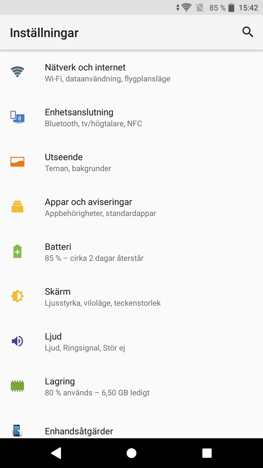 Trots att vi hade en del problem med mjukvaran är det värt att notera hur mycket vi gillar Sonys version av Android. Sony har bara gjort ett fåtal förändringar från Android. Till skillnad från flera andra tillverkare håller sig Sony borta från onödiga funktionella förändringar som gör operativsystemet svårt att hitta i. Mjukvaran i Xperia XA2 är enkel och smidig.