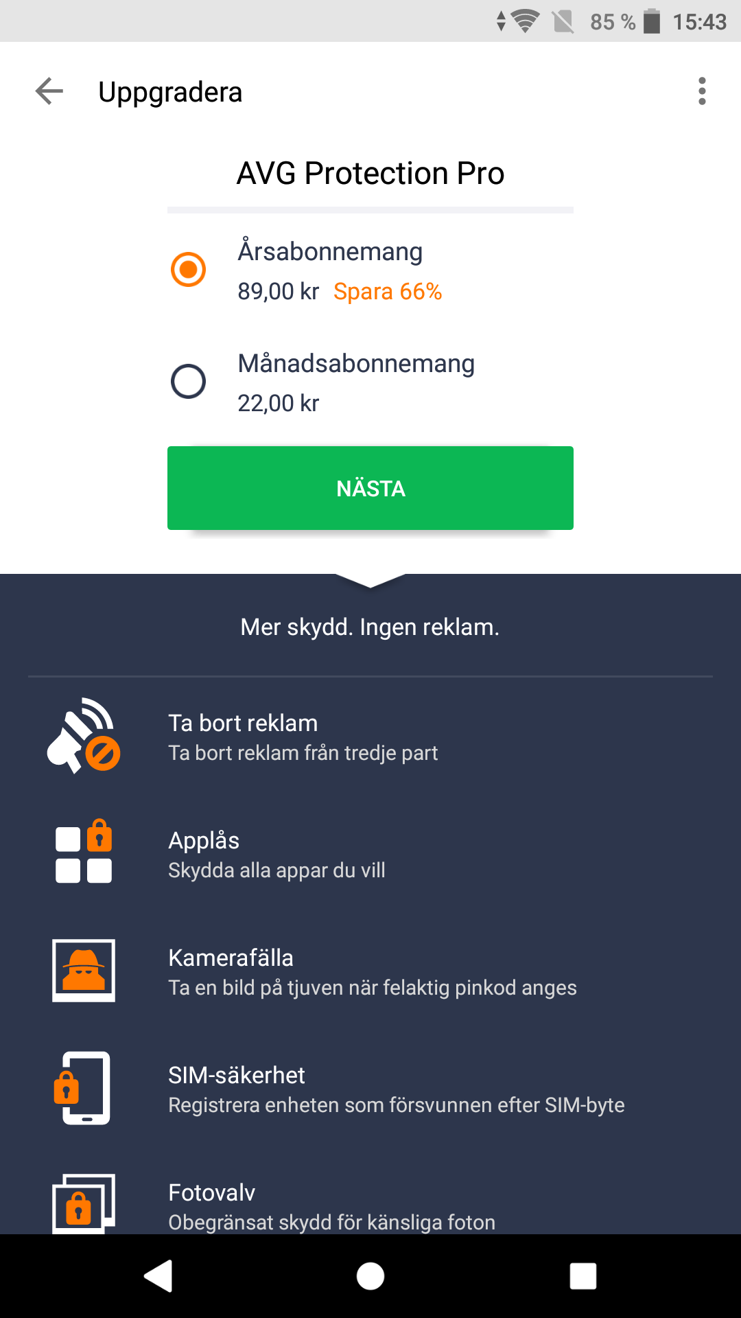 Ett litet undantag till företagets rena mjukvara är ett flertal förinstallerade appar. Trots att vi har klagat i flera år fortsätter Sony insistera på vikten av att installera ett antivirus-program och flera egna, ganska redundanta, applikationer. AVG Protection kan inte beskrivas som något annat än en reklamapp som försöker sälja dyra prenumerationer. Xperia Lounge är en app vars enda syfte är att göra reklam för appar, spel, musik och film. Apparna går att inaktivera men går inte att avinstallera. Sony Mobile drar säkerligen in pengar på sina samarbeten men det är lite frustrerande att behöva stå ut med reklam i en produkt som kostar tusentals kronor.
