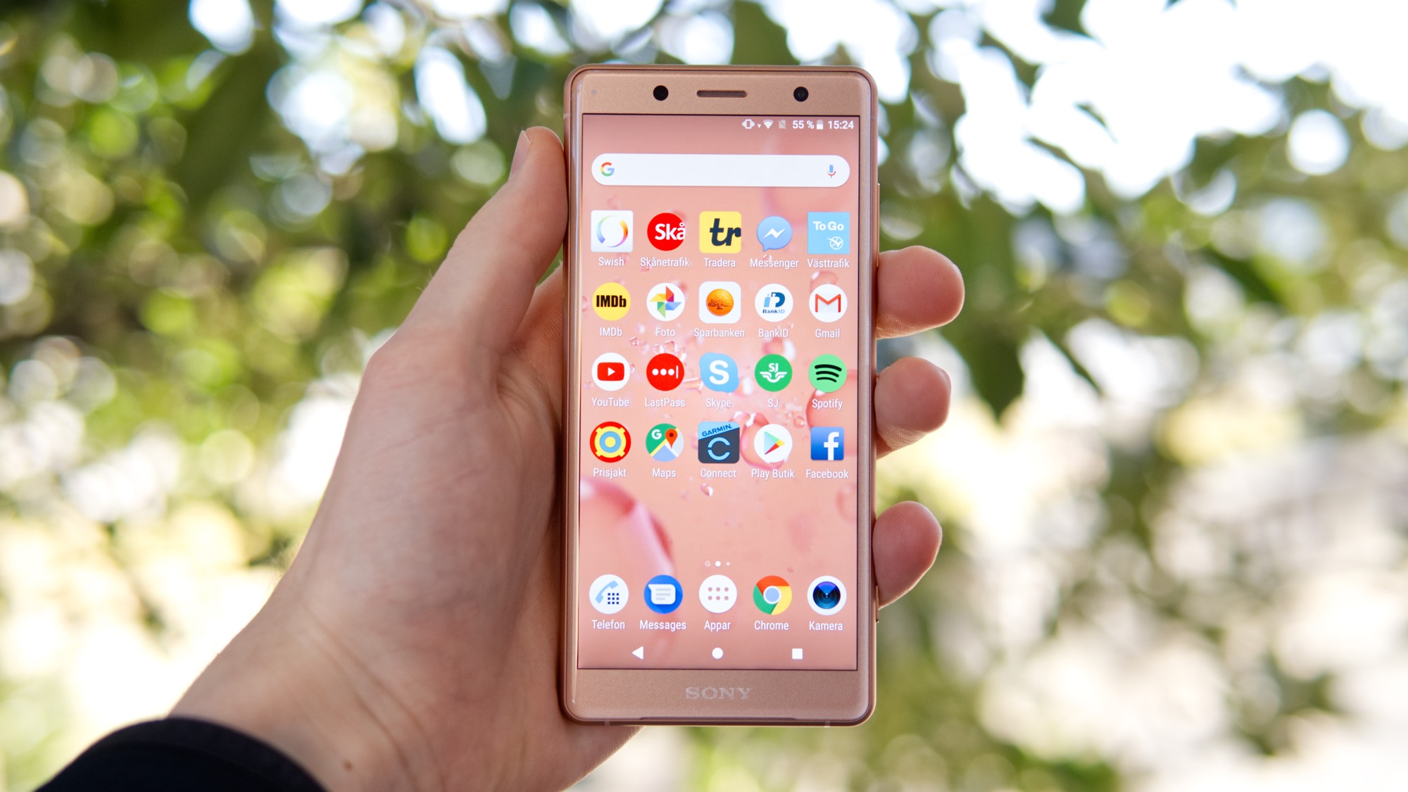 Sonys Compact-serie har alltid lidit av ganska mediokra skärmar. Nu är det slut med det. Den nya LCD-skärmen i XZ2 Compact mäter fem tum och har en upplösning på 1 080 x 2 160. Det ger skärmen en imponerande pixeltäthet som är rekordsättande för en så liten skärm. Det gör att XZ2 Compact erbjuder en imponerande detaljrikedom. Den är dessutom betydligt bättre än tidigare Sony-mobiler när det gäller färgåtergivning. Den är fortfarande lite för kall och blå i sin ton i sitt normala läge. När vi ställer skärmen i det ”Professionella” läget och ändrar vitbalansen med den inbyggda mjukvaran får den dock en mer naturlig ton och en imponerande exakthet. Skärmen är ljusstark men lider av en ganska medelmåttig svärta. Den har också svårt att bli så mörk som många konkurrenter kan bli för bekväm användning i natten. På det stora hela är vi riktigt imponerade av Sonys nya bildskärm.