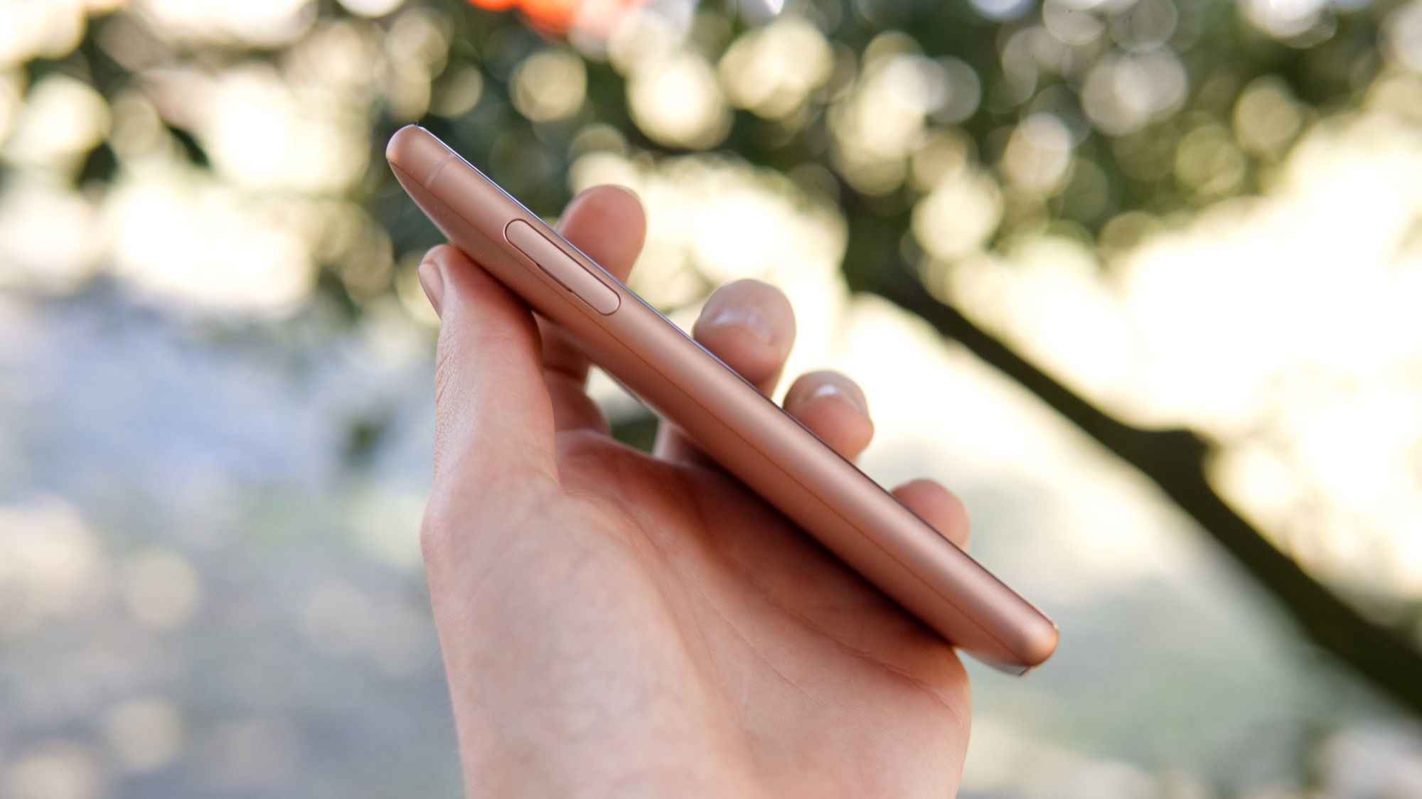 En annan unik designdetalj som skiljer XZ2 Compact från konkurrenterna är faktumet att den nya modellen är förhållandevis tjock. Medan många moderna smartphones mäter åtta, sju eller till och med så lite som sex millimeter i tjocklek, mäter XZ2 Compact mer än tolv millimeter. Telefonens tjocka design är märkbar när den ligger i handen men tack vare en kraftigt rundad baksida är den bekväm. På grund av den rundade baksidan föredrar vi nästan den nya designen framför den tunnare men plattare designen som Compact-serien använt förut.