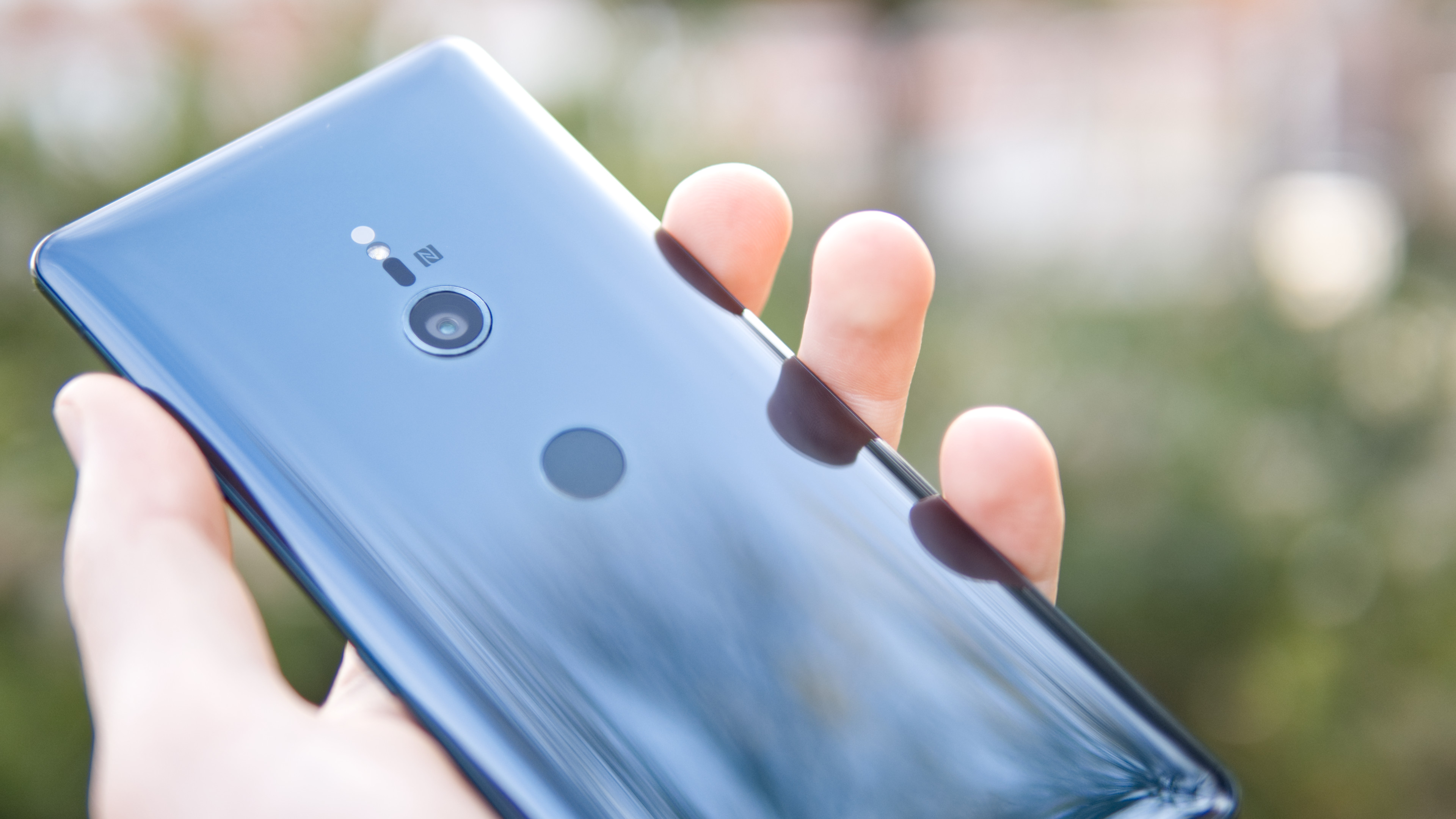 I likhet med Xperia XZ2 har XZ3 en fingeravtrycksläsare som sitter nära mitten av telefonen. Det skiljer den från konkurrenter som vanligen har sina läsare längre upp på baksidan. Sony menar att det är mer ergonomiskt eftersom det är en mer naturlig placering för användarens pekfinger när telefonen hålls med två händer. Det håller vi med om. Problemet är bara att läsaren främst används när den till exempel plockas upp från fickan. Då används oftast bara en hand. På grund av telefonens avlånga design krävs det nästan att telefonen hålls längre upp på baksidan för att den ska kunna hållas stadigt. I de flesta fall skulle vi därför föredra om läsaren satt lite längre upp på baksidan.