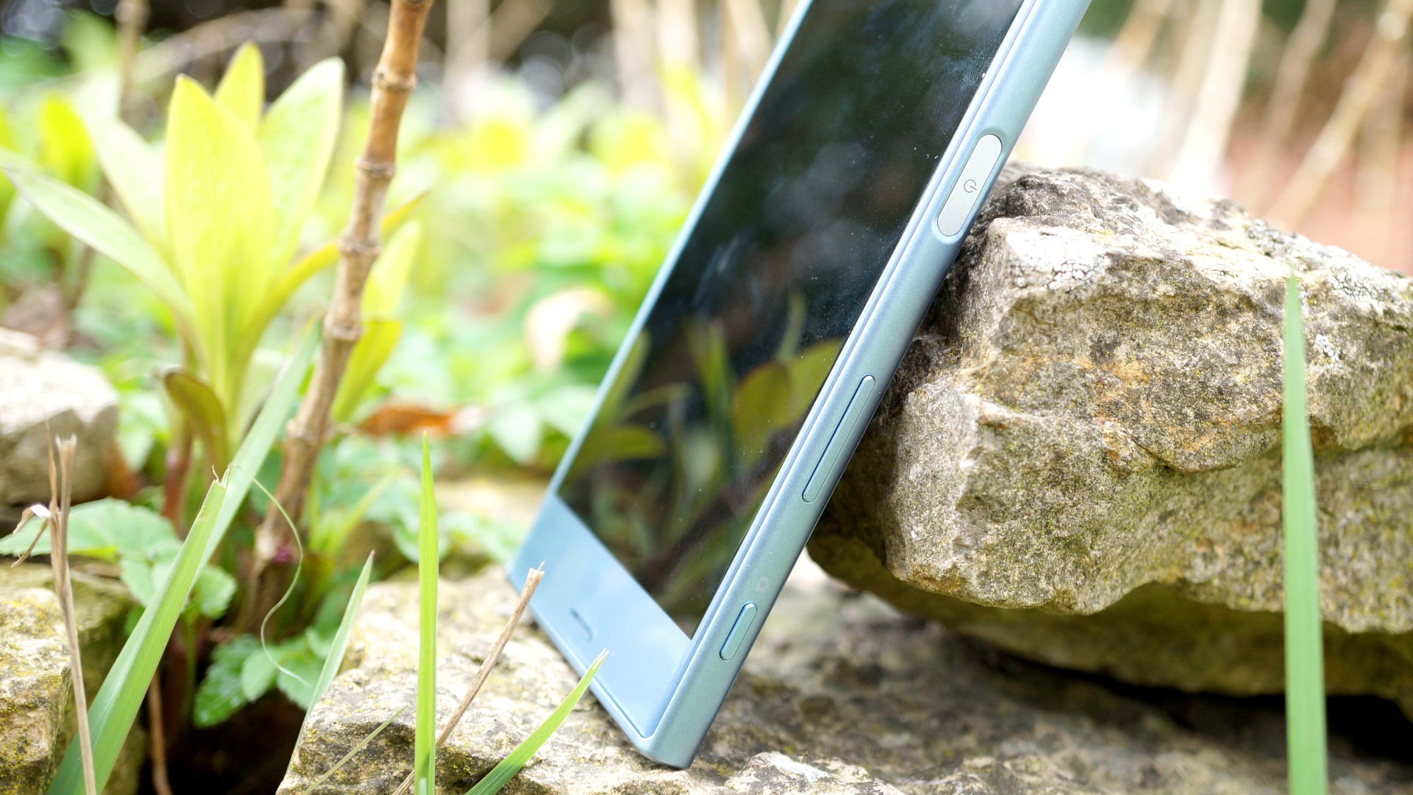 Telefonens högra och vänstra sida är gjord av plast och är rundade för att ligga bra i handen. På höger sida sitter telefonens fysiska knappar. Här finns en på/av-knapp som också agerar som fingeravtrycksläsare. Likt tidigare fingeravtrycksläsare från Sony fungerar också denna helt okej men den har tyvärr svårt att konkurrera med den pålitlighet som många konkurrenter kan erbjuda. Läsaren klarar till exempel inte av fuktiga fingrar och kan därför vara svår att använda i vissa situationer. Under läsaren sitter i alla fall två volymknappar och en kameraknapp. Kameraknappen är ingen nyhet för Xperia-familjen men är ändå unik i smartphonebranschen.
