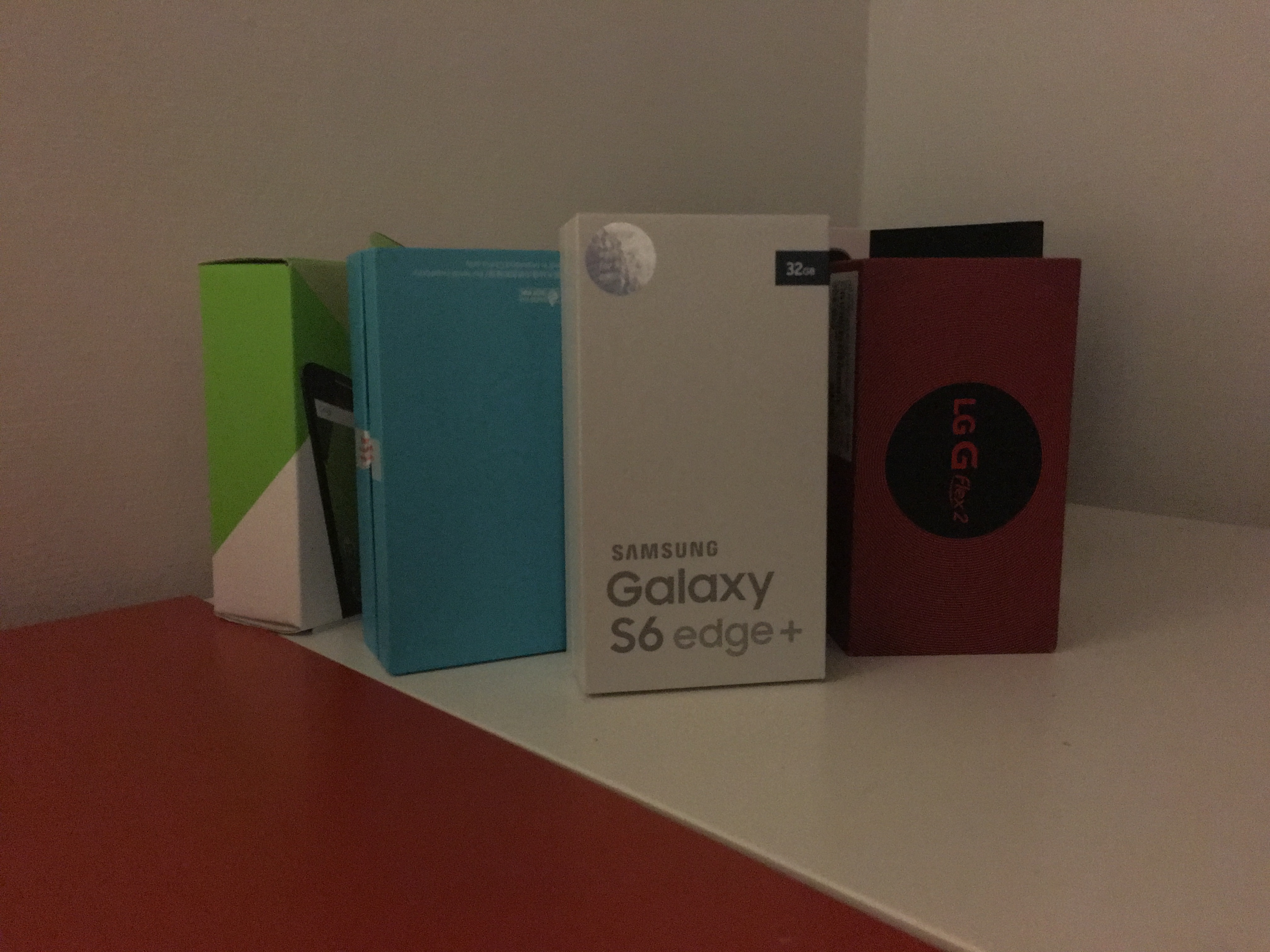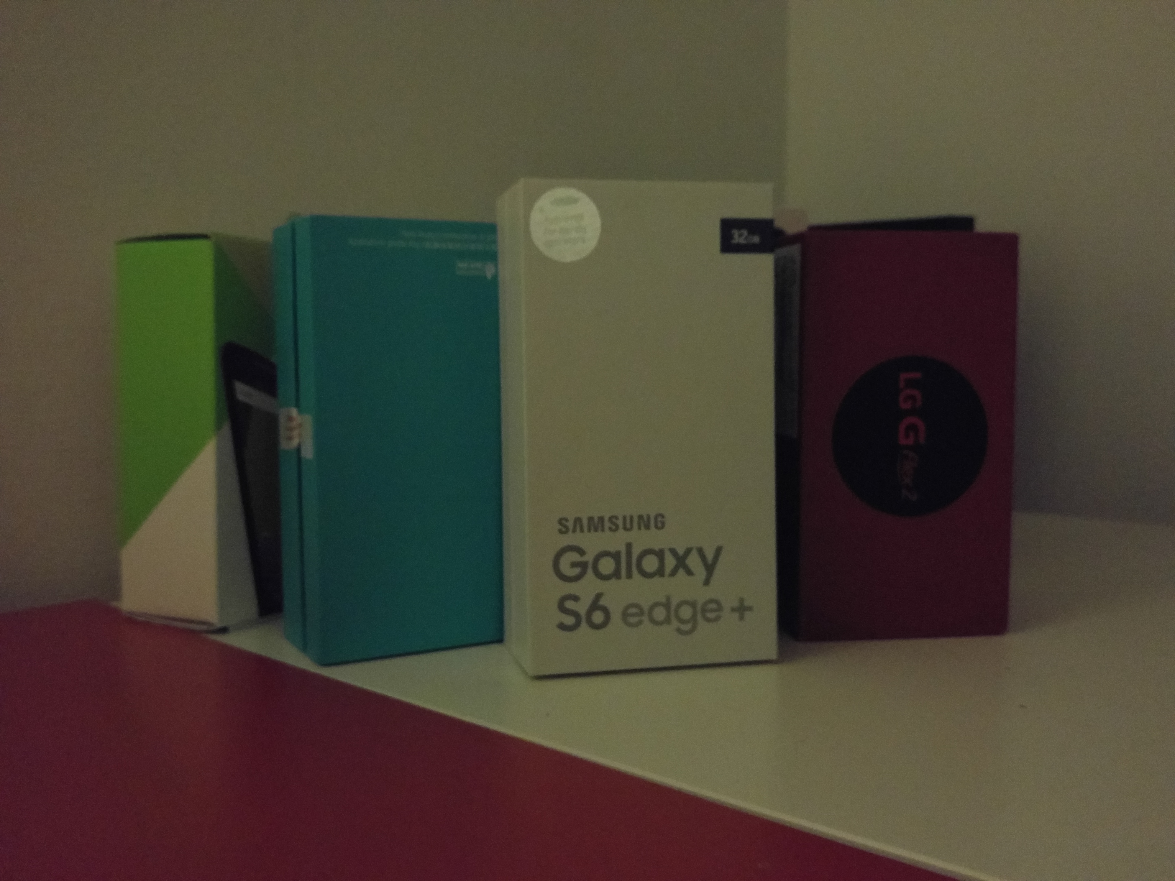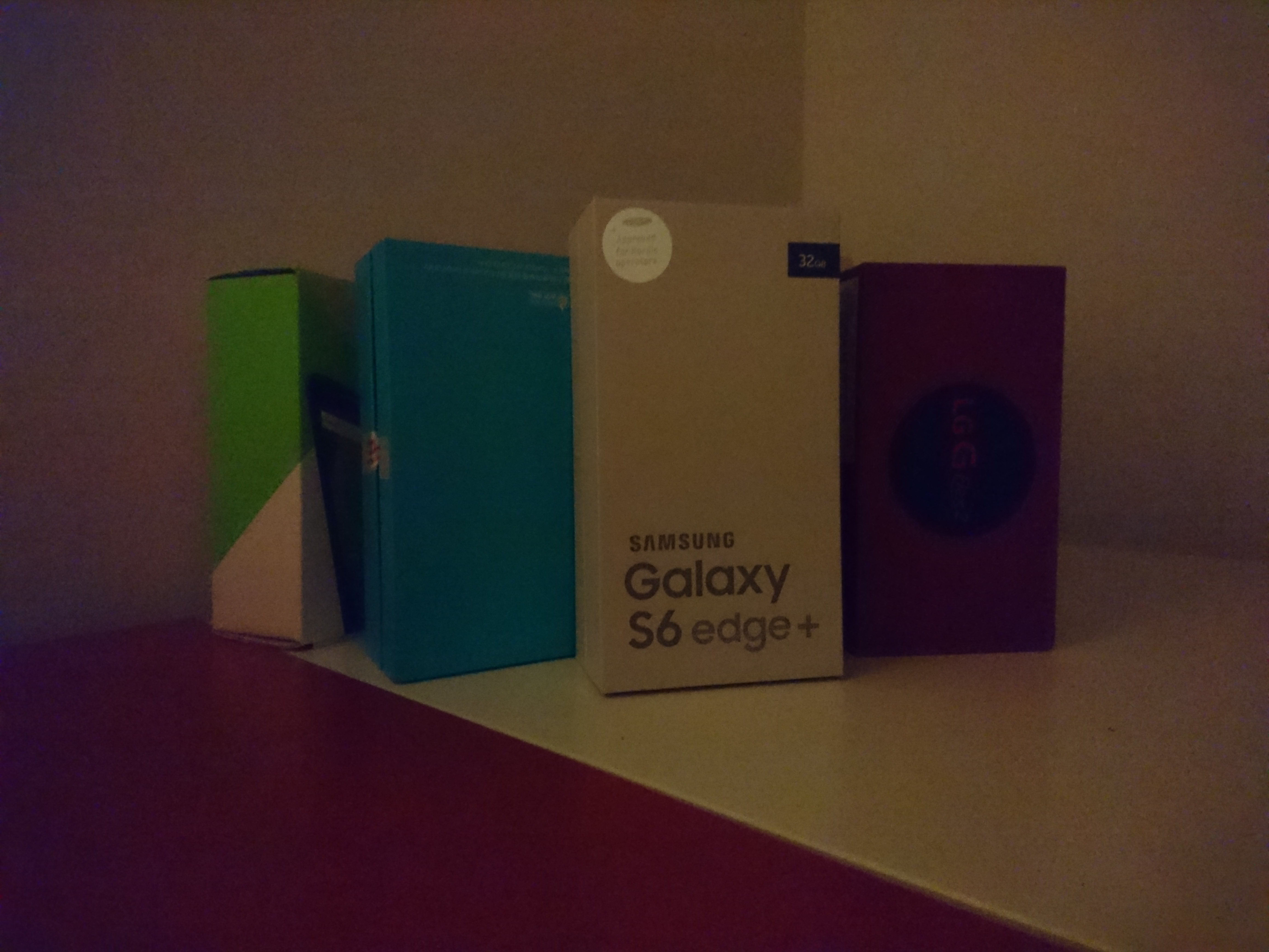 Det är främst i mörka miljöer som Sonys kamera får störst problem. Eftersom kameran saknar optisk bildstabilisering tvingas den ofta till att sänka sin slutartid för att hålla borta rörelseoskärpa. När vi tog de mörka testbilderna på smartphonekartongerna nedan valde Apples kamera en slutartid på 0,25 sekunder, Sonys kamera valde en slutartid på 0,0625 sekunder, en fjärdedel av Apples. I slutändan betyder det att Sonys kamera inte kunde återskapa en bild av samma kvalité. Sonys bild lider av kraftigt brus som försämrar bildens detaljrikedom. Utöver det är Sonys bild betydligt mörkare än konkurrenternas.