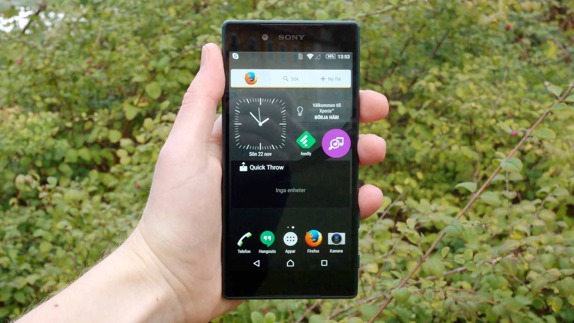 Likt Sony Xperia Z5 Compact som vi testade för ett par veckor sedan har alltså även Xperia Z5 en på/av-knapp som också fungerar som fingeravtrycksläsare. Knappen ligger nästan insjunken i telefonens kropp vilket gör att den svår att känna sig fram till.